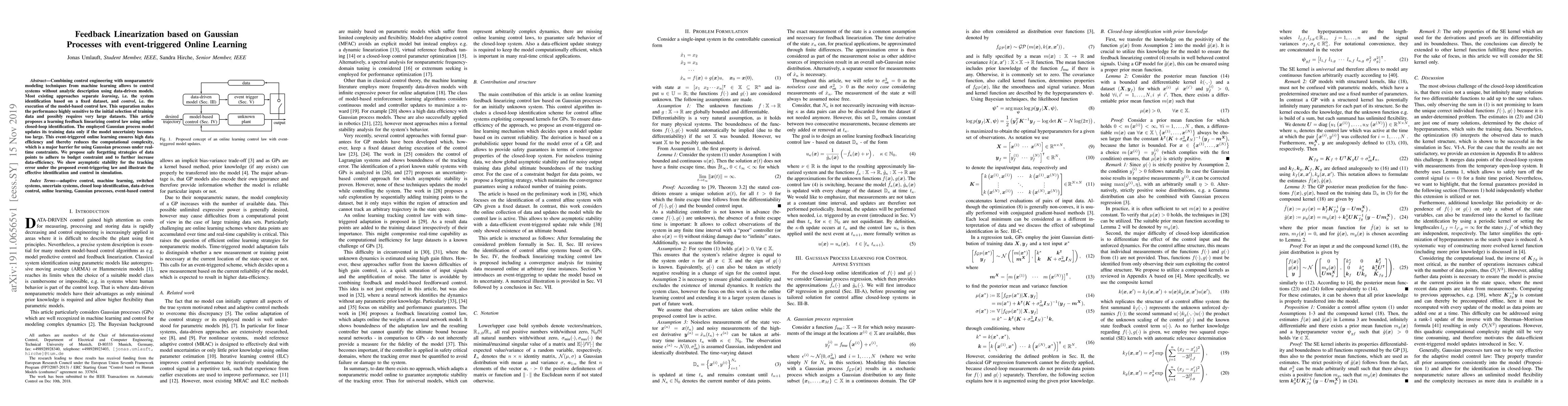 This paper proposes a data-driven feedback linearization control method using Gaussian processes with an event-triggered online learning approach to enhance data efficiency and reduce computational complexity. The method ensures asymptotic stability for tracking error and demonstrates effective identification and control in simulations.