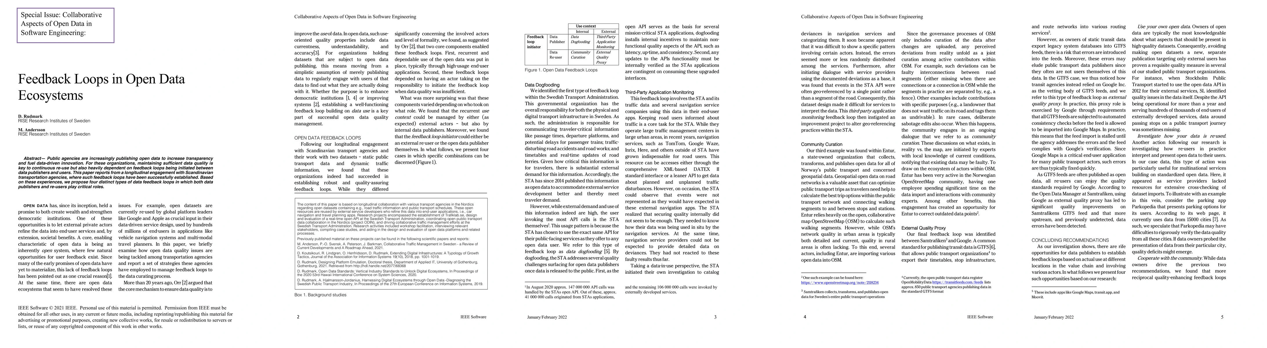 This paper explores the establishment of feedback loops in Scandinavian transportation agencies' open data ecosystems, emphasizing the importance of data quality. It identifies four distinct types of feedback loops where both data publishers and users play crucial roles in sustaining data-driven innovation.