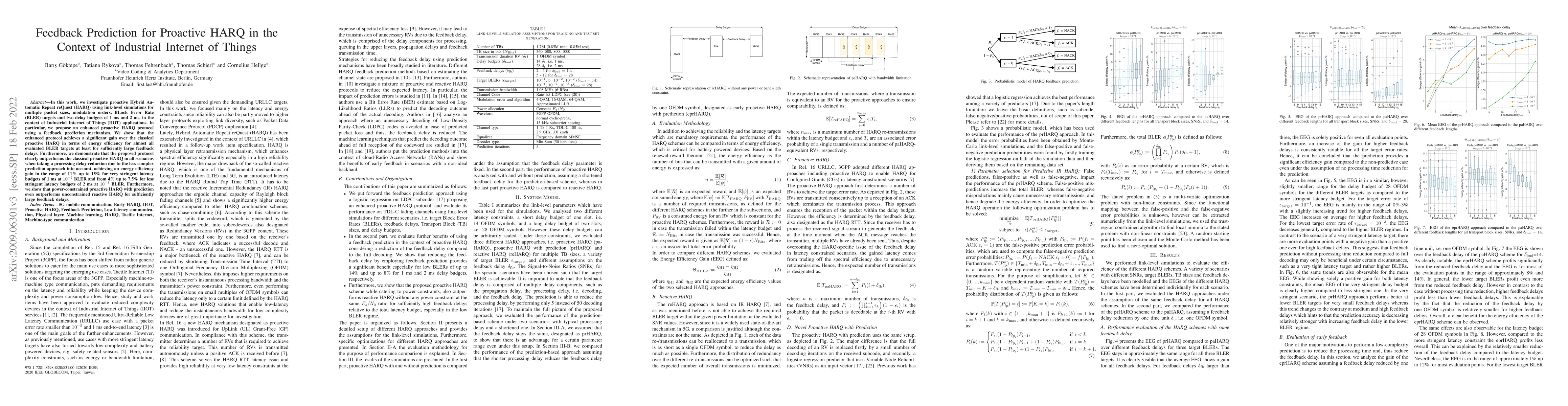 In this work, we investigate proactive Hybrid Automatic Repeat reQuest (HARQ) using link-level simulations for multiple packet sizes, modulation orders, BLock Error Rate (BLER) targets and two delay budgets of 1 ms and 2 ms, in the context of Industrial Internet of Things (IIOT) applications. In particular, we propose an enhanced proactive HARQ protocol using a feedback prediction mechanism. We show that the enhanced protocol achieves a significant gain over the classical proactive HARQ in terms of energy efficiency for almost all evaluated BLER targets at least for sufficiently large feedback delays. Furthermore, we demonstrate that the proposed protocol clearly outperforms the classical proactive HARQ in all scenarios when taking a processing delay reduction due to the less complex prediction approach into account, achieving an energy efficiency gain in the range of 11% up to 15% for very stringent latency budgets of 1 ms at $10^{-2}$ BLER and from 4% up to 7.5% for less stringent latency budgets of 2 ms at $10^{-3}$ BLER. Furthermore, we show that power-constrained proactive HARQ with prediction even outperforms unconstrained reactive HARQ for sufficiently large feedback delays.