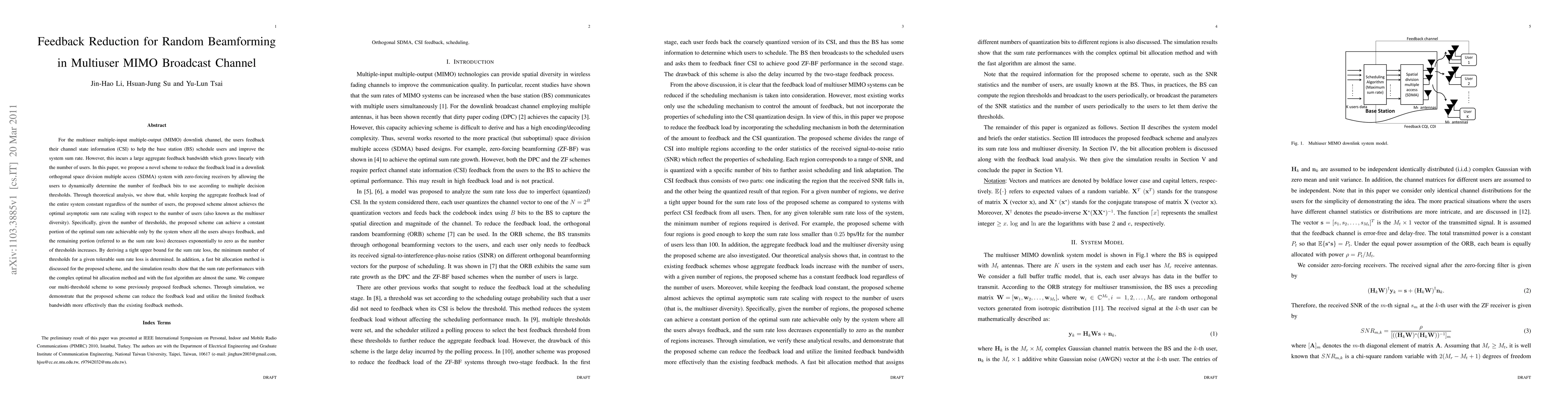 Researchers propose a new scheme to reduce feedback load in multiuser MIMO broadcast channels by allowing users to dynamically adjust the number of feedback bits based on decision thresholds. The scheme achieves near-optimal sum rate scaling with respect to the number of users.