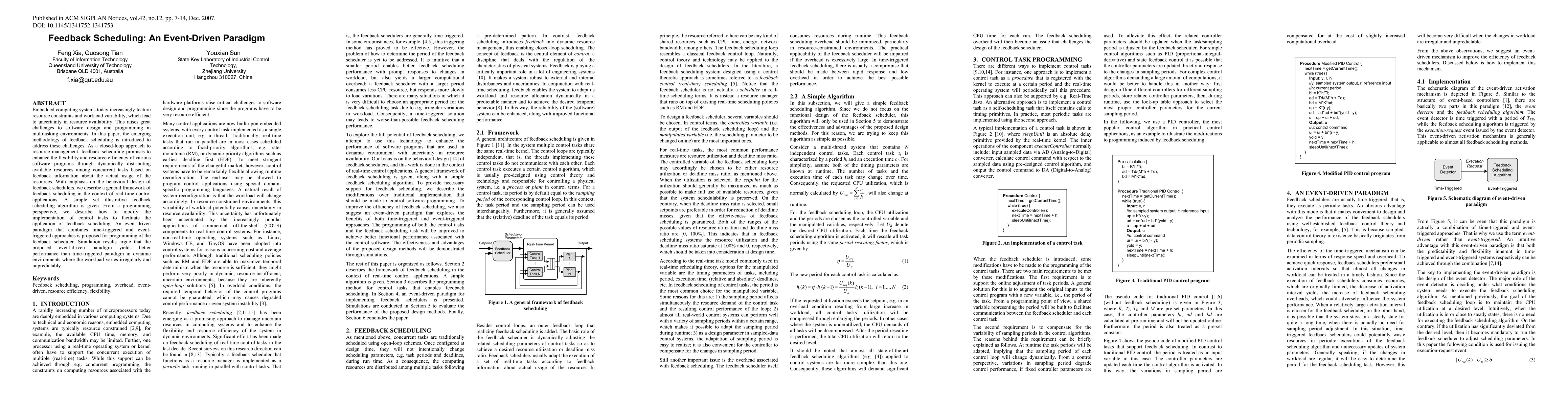 This paper introduces feedback scheduling as a closed-loop resource management methodology to address challenges in multitasking environments with resource constraints. It proposes an event-driven paradigm combining time-triggered and event-triggered approaches, demonstrating improved performance over time-triggered methods in dynamic, unpredictable workloads.