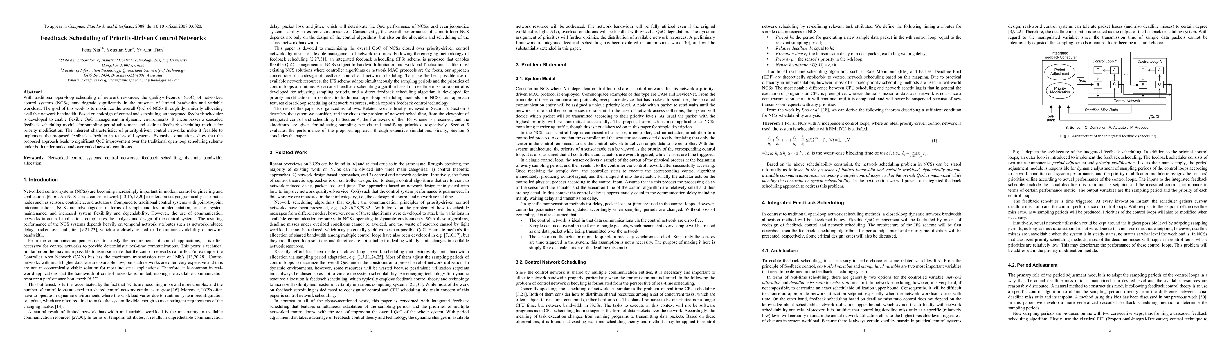 With traditional open-loop scheduling of network resources, the quality-of-control (QoC) of networked control systems (NCSs) may degrade significantly in the presence of limited bandwidth and variable workload. The goal of this work is to maximize the overall QoC of NCSs through dynamically allocating available network bandwidth. Based on codesign of control and scheduling, an integrated feedback scheduler is developed to enable flexible QoC management in dynamic environments. It encompasses a cascaded feedback scheduling module for sampling period adjustment and a direct feedback scheduling module for priority modification. The inherent characteristics of priority-driven control networks make it feasible to implement the proposed feedback scheduler in real-world systems. Extensive simulations show that the proposed approach leads to significant QoC improvement over the traditional open-loop scheduling scheme under both underloaded and overloaded network conditions.