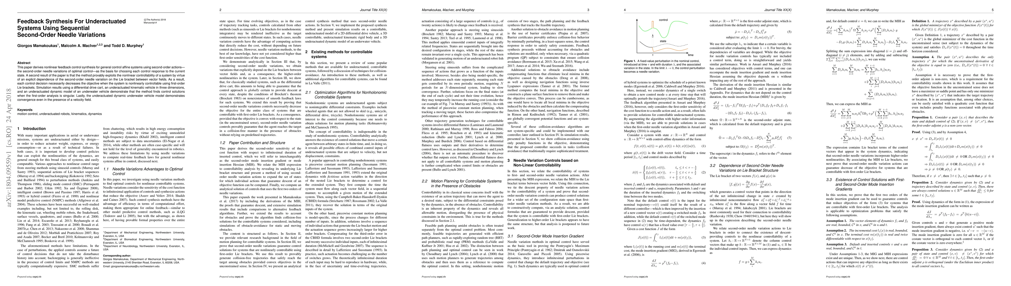 This paper derives nonlinear feedback control synthesis for general control affine systems using second-order actions---the second-order needle variations of optimal control---as the basis for choosing each control response to the current state. A second result of the paper is that the method provably exploits the nonlinear controllability of a system by virtue of an explicit dependence of the second-order needle variation on the Lie bracket between vector fields. As a result, each control decision necessarily decreases the objective when the system is nonlinearly controllable using first-order Lie brackets. Simulation results using a differential drive cart, an underactuated kinematic vehicle in three dimensions, and an underactuated dynamic model of an underwater vehicle demonstrate that the method finds control solutions when the first-order analysis is singular. Lastly, the underactuated dynamic underwater vehicle model demonstrates convergence even in the presence of a velocity field.