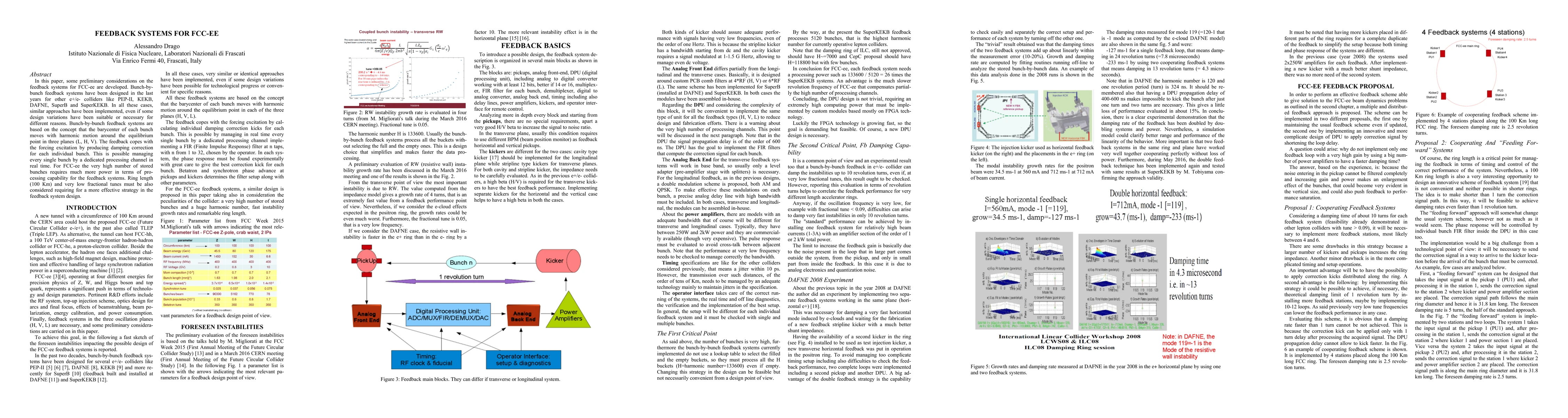 In this paper, some preliminary considerations on the feedback systems for FCC-ee are developed. Bunch-by-bunch feedback systems have been designed in the last years for other e+/e- colliders like PEP-II, KEKB, DAFNE, SuperB and SuperKEKB. In all these cases, similar approaches have been implemented, even if some design variations have been suitable or necessary for different reasons. Bunch-by-bunch feedback systems are based on the concept that the barycenter of each bunch moves with harmonic motion around the equilibrium point in three planes (L, H, V). The feedback copes with the forcing excitation by producing damping correction for each individual bunch. This is possible managing every single bunch by a dedicated processing channel in real time. For FCC-ee the very high number of stored bunches requires much more power in terms of processing capability for the feedback systems. Ring length (100 Km) and very low fractional tunes must be also considered requiring for a more effective strategy in the feedback system design.
