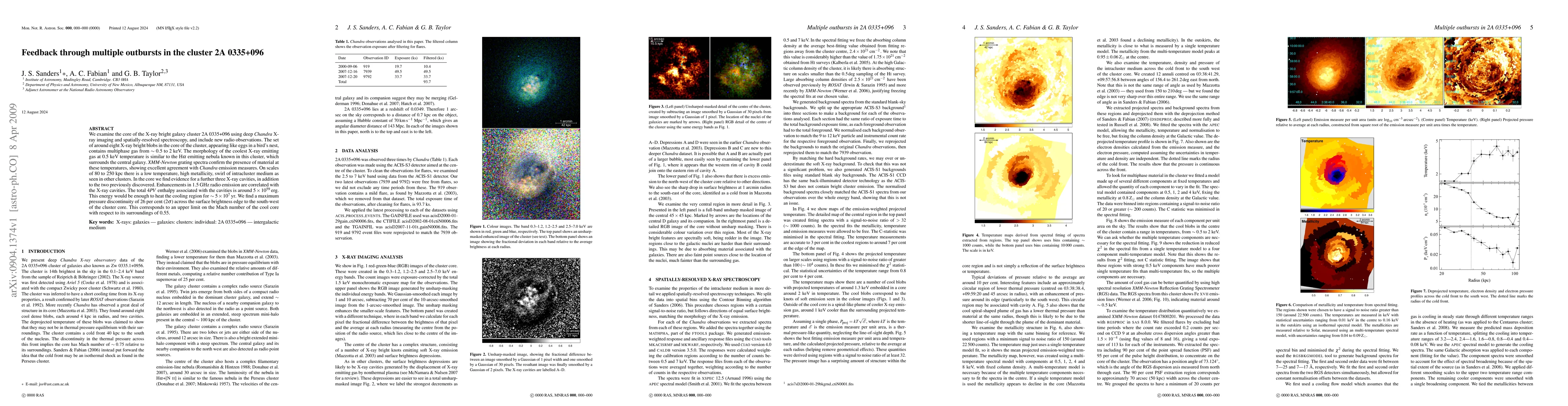 A study of galaxy cluster 2A 0335+096 reveals multiple X-ray bright blobs with multiphase gas, indicating the presence of a hot core that could heat up for ~5x10^7 years with an energy of 5x10^59 ergs.
