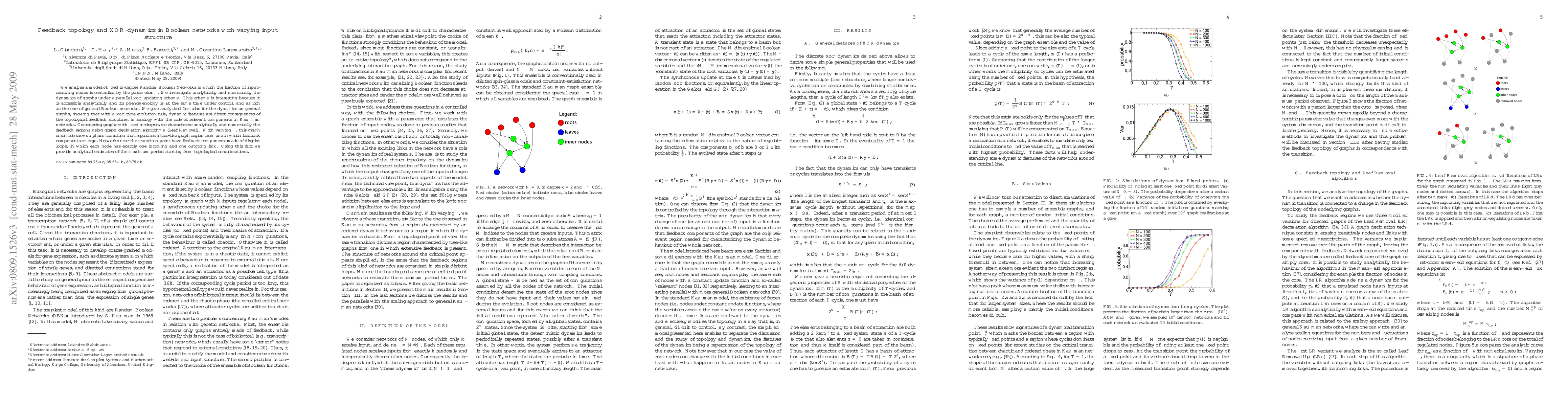 We analyse a model of fixed in-degree Random Boolean Networks in which the fraction of input-receiving nodes is controlled by a parameter gamma. We investigate analytically and numerically the dynamics of graphs under a parallel XOR updating scheme. This scheme is interesting because it is accessible analytically and its phenomenology is at the same time under control, and as rich as the one of general Boolean networks. Biologically, it is justified on abstract grounds by the fact that all existing interactions play a dynamical role. We give analytical formulas for the dynamics on general graphs, showing that with a XOR-type evolution rule, dynamic features are direct consequences of the topological feedback structure, in analogy with the role of relevant components in Kauffman networks. Considering graphs with fixed in-degree, we characterize analytically and numerically the feedback regions using graph decimation algorithms (Leaf Removal). With varying gamma, this graph ensemble shows a phase transition that separates a tree-like graph region from one in which feedback components emerge. Networks near the transition point have feedback components made of disjoint loops, in which each node has exactly one incoming and one outgoing link. Using this fact we provide analytical estimates of the maximum period starting from topological considerations.