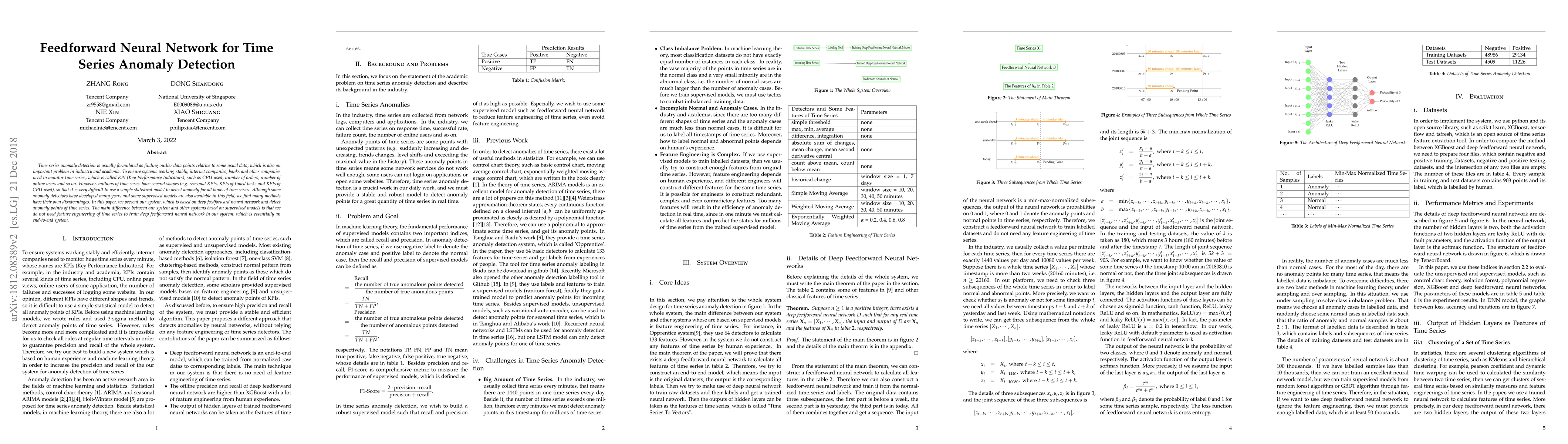The research presents a system for time series anomaly detection using a deep feedforward neural network, which is an end-to-end system that does not require feature engineering of time series for training.