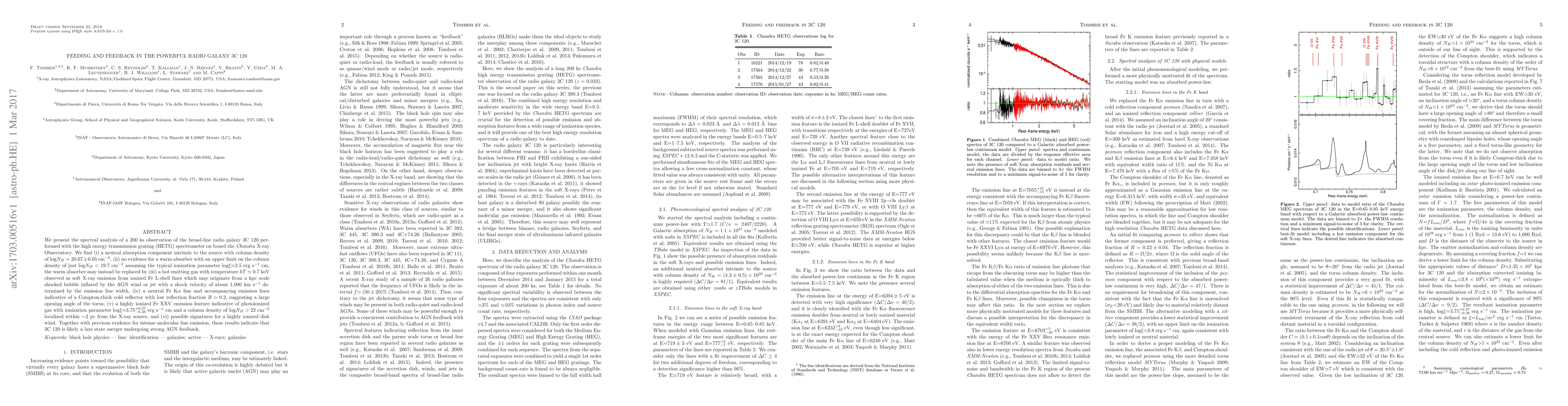 We present the spectral analysis of a 200~ks observation of the broad-line radio galaxy 3C~120 performed with the high energy transmission grating (HETG) spectrometer on board the \emph{Chandra} X-ray Observatory. We find (i) a neutral absorption component intrinsic to the source with column density of $\text{log}N_H = 20.67\pm0.05$~cm$^{-2}$, (ii) no evidence for a warm absorber with an upper limit on the column density of just $\text{log}N_H < 19.7$~cm$^{-2}$ assuming the typical ionization parameter log$\xi$$\simeq$2.5~erg~s$^{-1}$~cm, the warm absorber may instead be replaced by (iii) a hot emitting gas with temperature $kT \simeq 0.7$~keV observed as soft X-ray emission from ionized Fe L-shell lines which may originate from a kpc scale shocked bubble inflated by the AGN wind or jet with a shock velocity of about 1,000~km~s$^{-1}$ determined by the emission line width, (iv) a neutral Fe K$\alpha$ line and accompanying emission lines indicative of a Compton-thick cold reflector with low reflection fraction $R\simeq0.2$, suggesting a large opening angle of the torus, (v) a highly ionized Fe~XXV emission feature indicative of photoionized gas with ionization parameter log$\xi$$=$$3.75^{+0.27}_{-0.38}$~erg~s$^{-1}$~cm and a column density of $\text{log}N_H > 22$~cm$^{-2}$ localized within $\sim$2~pc from the X-ray source, and (vi) possible signatures for a highly ionized disk wind. Together with previous evidence for intense molecular line emission, these results indicate that 3C~120 is likely a late state merger undergoing strong AGN feedback.
