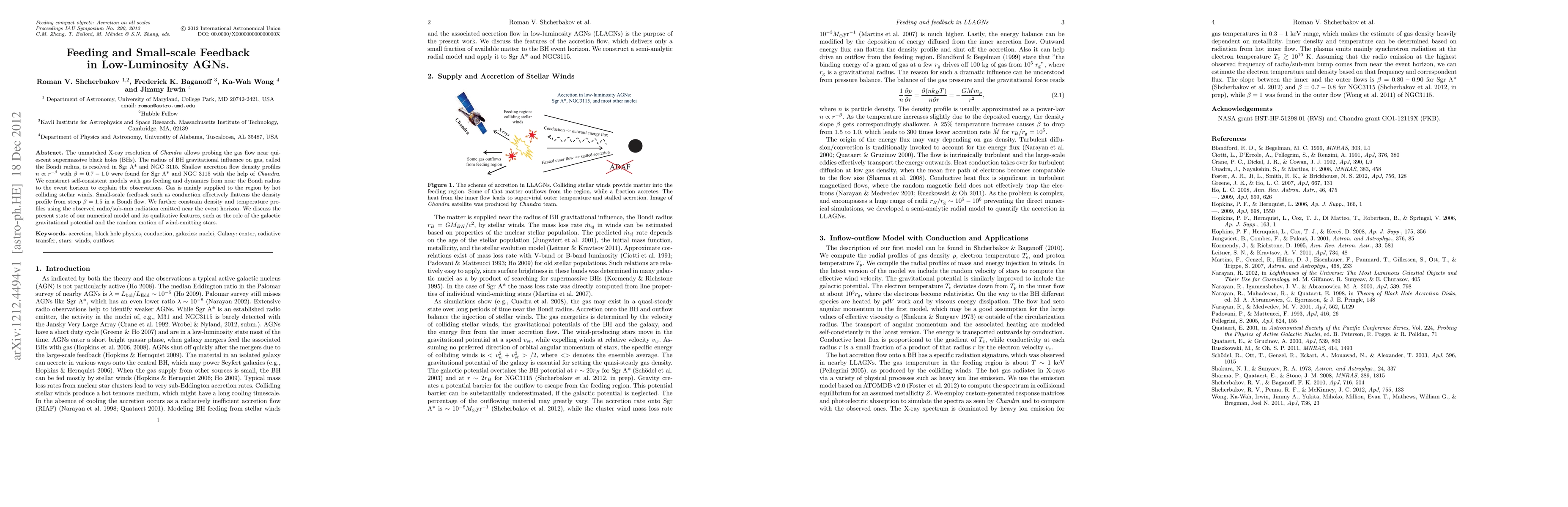 The unmatched X-ray resolution of Chandra allows probing the gas flow near quiescent supermassive black holes (BHs). The radius of BH gravitational influence on gas, called the Bondi radius, is resolved in Sgr A* and NGC 3115. Shallow accretion flow density profiles n \sim r^{-beta} with beta=0.7-1.0 were found for Sgr A* and NGC 3115 with the help of Chandra. We construct self-consistent models with gas feeding and dynamics from near the Bondi radius to the event horizon to explain the observations. Gas is mainly supplied to the region by hot colliding stellar winds. Small-scale feedback such as conduction effectively flattens the density profile from steep beta=1.5 in a Bondi flow. We further constrain density and temperature profiles using the observed radio/sub-mm radiation emitted near the event horizon. We discuss the present state of our numerical model and its qualitative features, such as the role of the galactic gravitational potential and the random motion of wind-emitting stars.