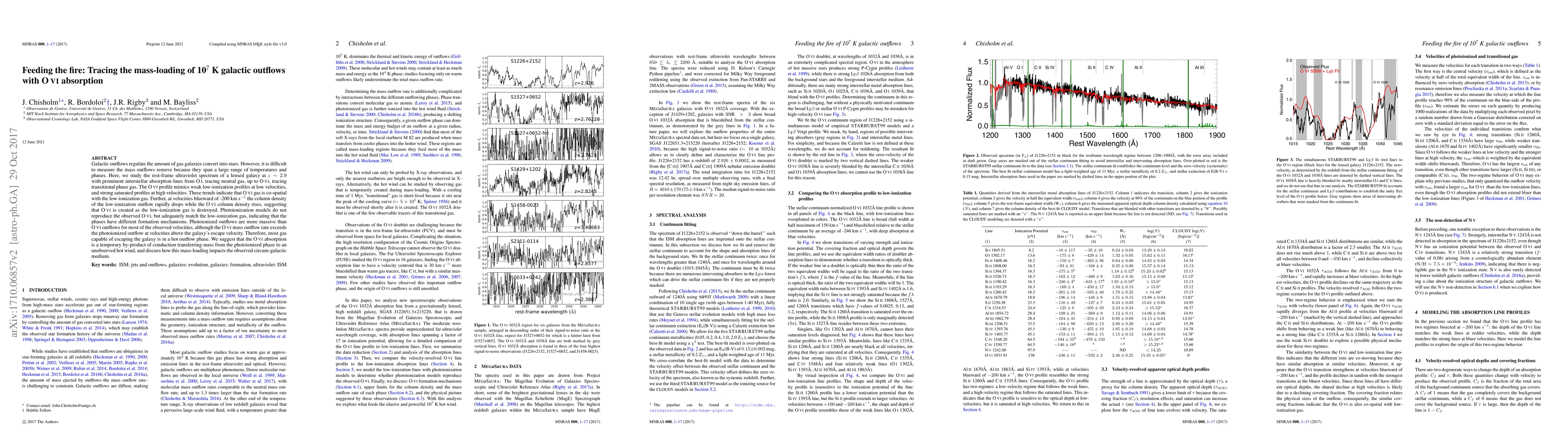Galactic outflows regulate the amount of gas galaxies convert into stars. However, it is difficult to measure the mass outflows remove because they span a large range of temperatures and phases. Here, we study the rest-frame ultraviolet spectrum of a lensed galaxy at z~2.9 with prominent interstellar absorption lines from O I, tracing neutral gas, up to O VI, tracing transitional phase gas. The O VI profile mimics weak low-ionization profiles at low velocities, and strong saturated profiles at high velocities. These trends indicate that O VI gas is co-spatial with the low-ionization gas. Further, at velocities blueward of -200 km/s the column density of the low-ionization outflow rapidly drops while the O VI column density rises, suggesting that O VI is created as the low-ionization gas is destroyed. Photoionization models do not reproduce the observed O VI, but adequately match the low-ionization gas, indicating that the phases have different formation mechanisms. Photoionized outflows are more massive than O VI outflows for most of the observed velocities, although the O VI mass outflow rate exceeds the photoionized outflow at velocities above the galaxy's escape velocity. Therefore, most gas capable of escaping the galaxy is in a hot outflow phase. We suggest that the O VI absorption is a temporary by-product of conduction transferring mass from the photoionized phase to an unobserved hot wind, and discuss how this mass-loading impacts the observed circum-galactic medium.