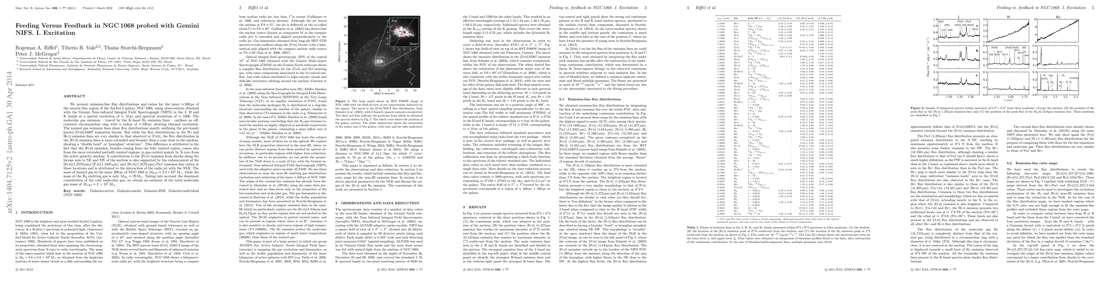 We present emission-line flux distributions and ratios for the inner 200pc of the narrow-line region of the Seyfert2 galaxy NGC1068, using observations obtained with the Gemini Near-infrared Integral Field Spectrograph (NIFS) in the J, H and K bands at a spatial resolution of 10pc and spectral resolution of 5300. The molecular gas emission - traced by the K-band H_2 emission lines - outlines an off-centered circumnuclear ring with a radius of 100pc showing thermal excitation. The ionized gas emission lines show flux distributions mostly outlining the previously known [OIII]5007 ionization bicone. But while the flux distributions in the HI and HeII emission lines are very similar to that observed in [OIII], the flux distribution in the [FeII] emission lines is more extended and broader than a cone close to the nucleus, showing a "double bowl" or `hourglass" structure". This difference is attributed to the fact that the [FeII] emission, besides coming from the fully ionized region, comes also from the more extended partially ionized regions, in gas excited mainly by X-rays from the active galactic nucleus. A contribution to the [FeII] emission from shocks along the bicone axis to NE and SW of the nucleus is also supported by the enhancement of the [FeII](1.2570)/[PII](1.1885) and [FeII](1.2570)/Pabeta emission-line ratios at these locations and is attributed to the interaction of the radio jet with the NLR. The mass of ionized gas in the inner 200pc of NGC1068 is MHII~2.2E4 M_Sun, while the mass of the H2 emitting gas is only M_{H2}~29M_Sun. Taking into account the dominant contribution of the cold molecular gas, we obtain an estimate of the total molecular gas mass of Mcold~2E7 M_Sun.