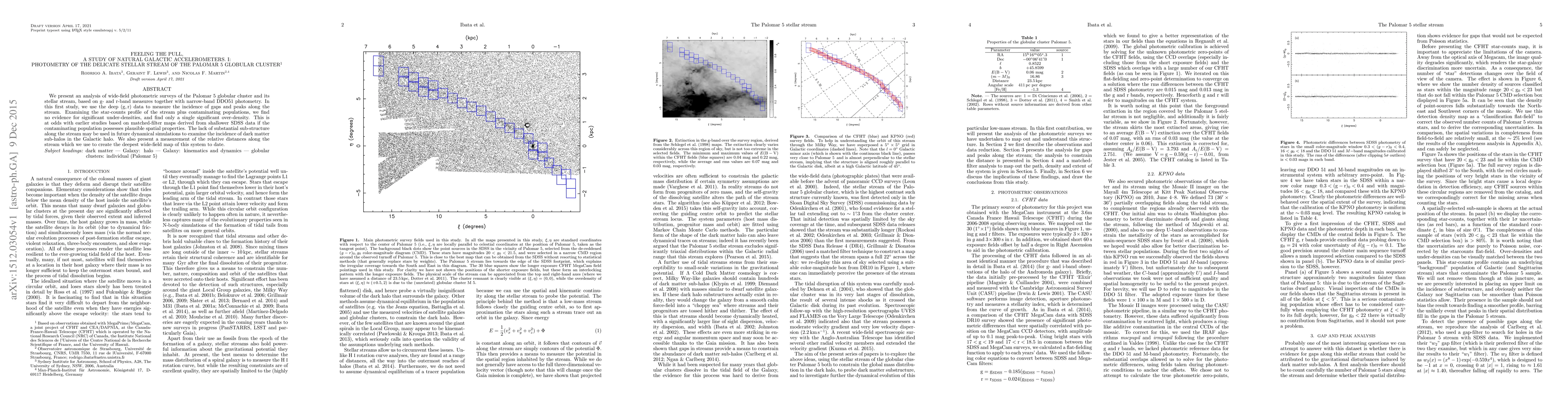 We present an analysis of wide-field photometric surveys of the Palomar 5 globular cluster and its stellar stream, based on g- and r-band measures together with narrow-band DDO51 photometry. In this first study, we use the deep (g,r) data to measure the incidence of gaps and peaks along the stream. Examining the star-counts profile of the stream plus contaminating populations, we find no evidence for significant under-densities, and find only a single significant over-density. This is at odds with earlier studies based on matched-filter maps derived from shallower SDSS data if the contaminating population possesses plausible spatial properties. The lack of substantial sub-structure along the stream may be used in future dynamical simulations to examine the incidence of dark matter sub-halos in the Galactic halo. We also present a measurement of the relative distances along the stream which we use to create the deepest wide-field map of this system to date.