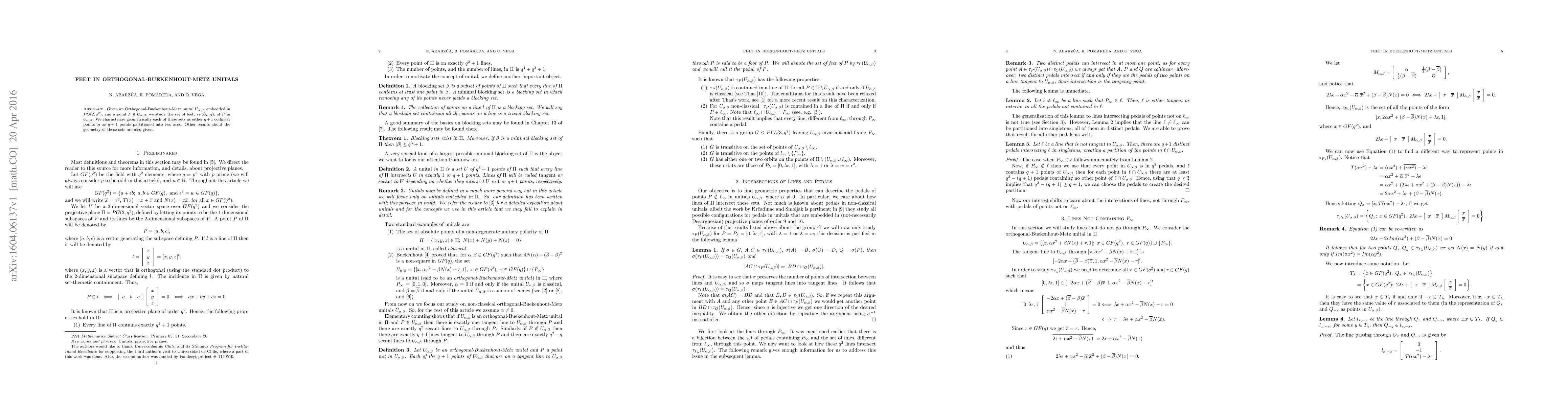 This paper investigates the geometric configuration of feet, $\tau_{P}(U_{\alpha,\beta})$, formed by a point $P$ outside an Orthogonal-Buekenhout-Metz unital $U_{\alpha,\beta}$ in $PG(2,q^2)$. The study characterizes these sets as either $q+1$ collinear points or as $q+1$ points divided into two arcs.