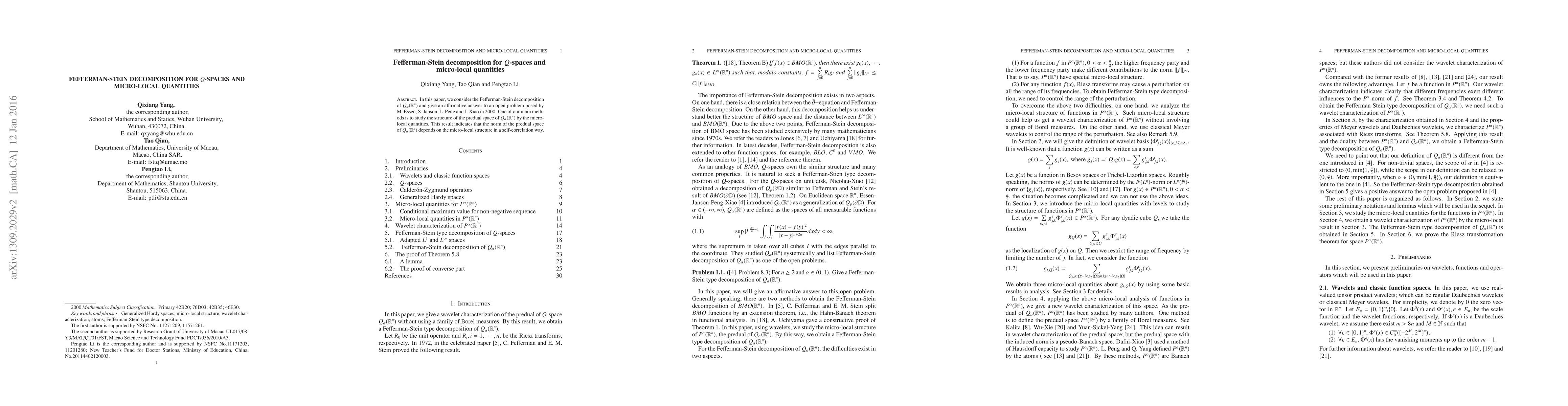 In this paper, we consider the Fefferman-Stein decomposition of $Q_{\alpha}(\mathbb{R}^{n})$ and give an affirmative answer to an open problem posed by M. Essen, S. Janson, L. Peng and J. Xiao in 2000. One of our main methods is to study the structure of the predual space of $Q_{\alpha}(\mathbb{R}^{n})$ by the micro-local quantities. This result indicates that the norm of the predual space of $Q_{\alpha}(\mathbb{R}^{n})$ depends on the micro-local structure in a self-correlation way.