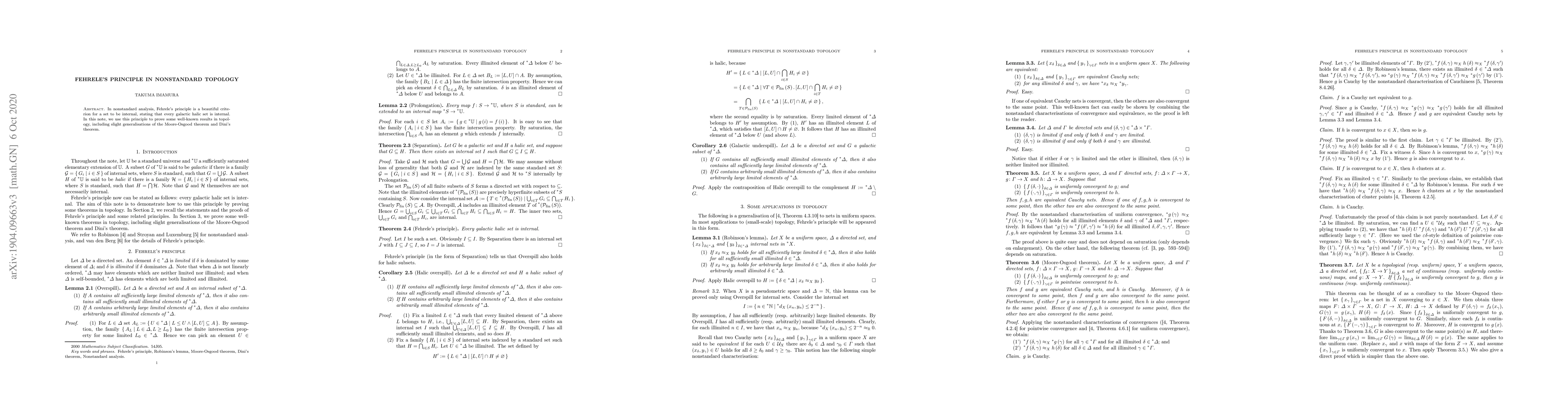 In nonstandard analysis, Fehrele's principle is a beautiful criterion for a set to be internal, stating that every galactic halic set is internal. In this note, we use this principle to prove some well-known results in topology, including slight generalisations of the Moore-Osgood theorem and Dini's theorem.