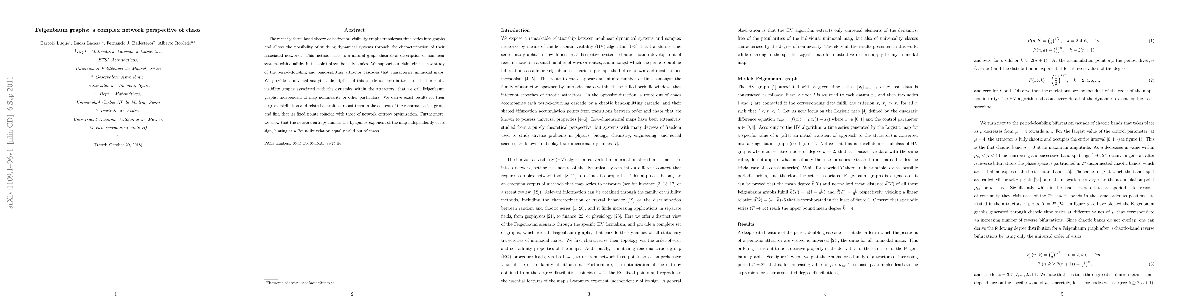 This paper introduces horizontal visibility graphs to study dynamical systems, transforming time series into networks. It applies this method to Feigenbaum graphs, revealing universal analytical properties and connections to network entropy and renormalization group theory, suggesting a universal relation akin to Pesin's theorem.
