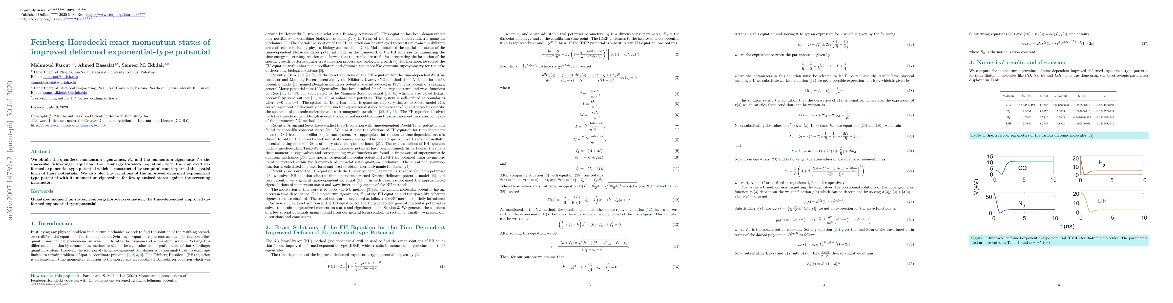 This paper quantizes momentum eigenvalues and eigenstates for the Feinberg-Horodecki equation using an improved deformed exponential-type potential, and plots the potential's variations with quantized states against the screening parameter.