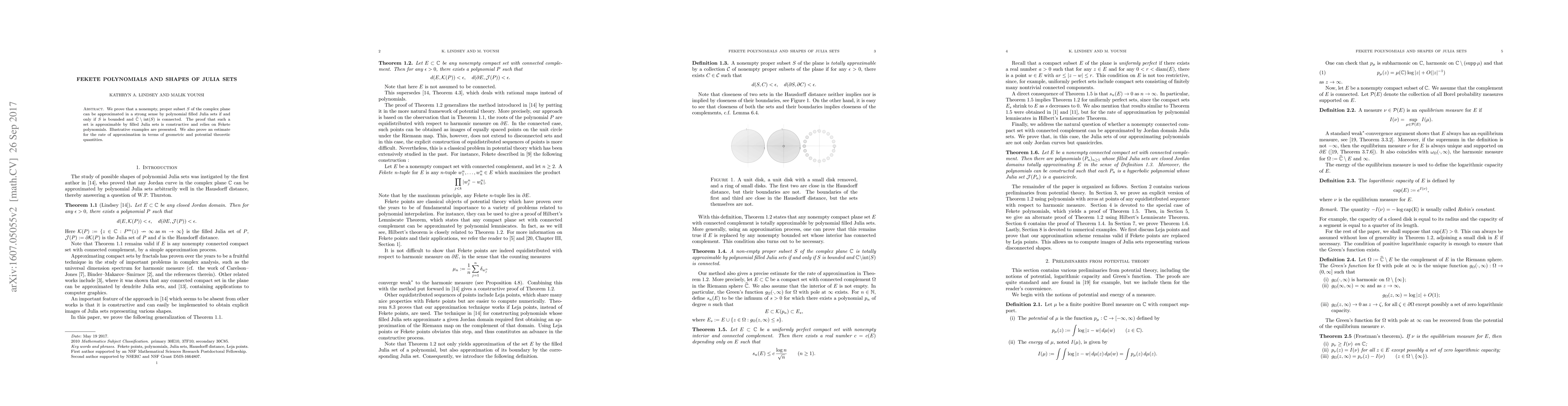 This paper proves that a nonempty, proper subset of the complex plane can be strongly approximated by filled Julia sets if and only if the set is bounded and its complement is connected. The proof utilizes Fekete polynomials and provides constructive examples along with an estimate for the approximation rate based on geometric and potential theoretic quantities.