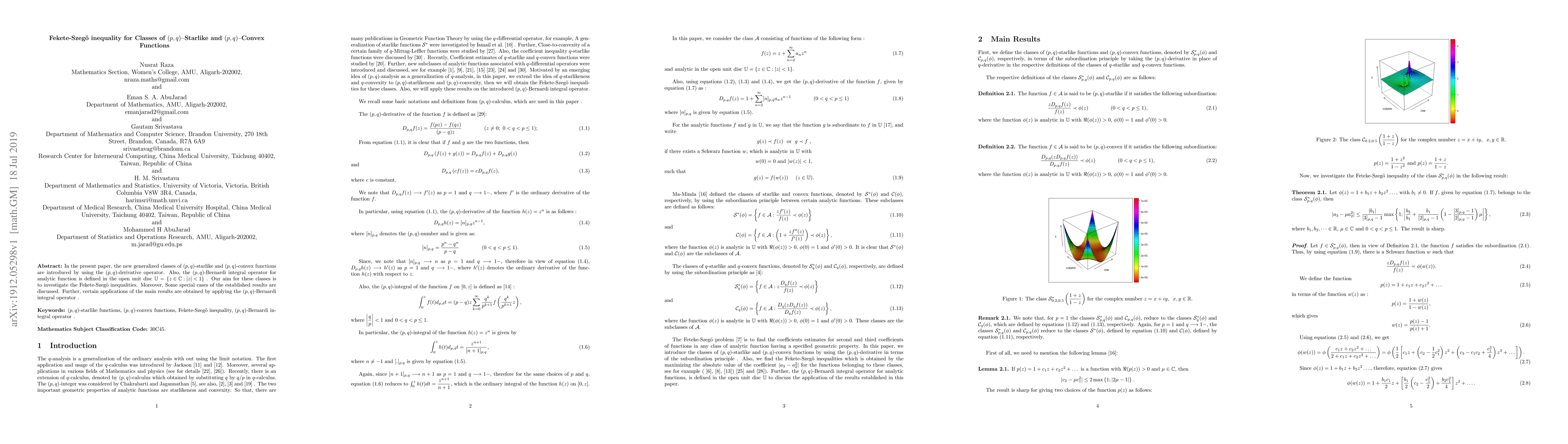 In the present paper, the new generalized classes of (p,q)-starlike and $(p,q)$-convex functions are introduced by using the (p,q)-derivative operator. Also, the (p,q)-Bernardi integral operator for analytic function is defined in an open unit disc. Our aim for these classes is to investigate the Fekete-Szego inequalities. Moreover, Some special cases of the established results are discussed. Further, certain applications of the main results are obtained by applying the (p,q)-Bernardi integral operator