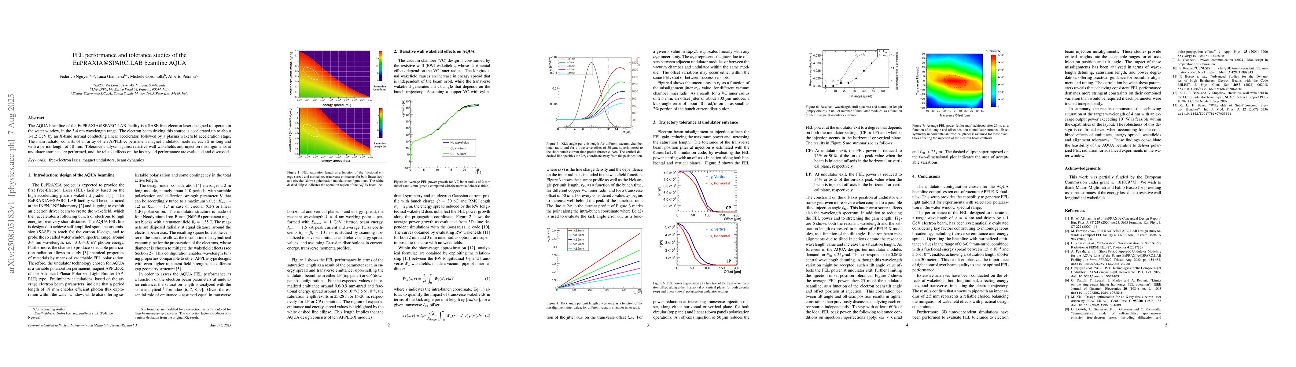The AQUA beamline of the EuPRAXIA@SPARC_LAB facility is a SASE free-electron laser designed to operate in the water window, in the 3-4 nm wavelength range. The electron beam driving this source is accelerated up to about 1-1.2 GeV by an X-band normal conducting linear accelerator, followed by a plasma wakefield acceleration stage. The main radiator consists of an array of ten APPLE-X permanent magnet undulator modules, each 2 m long and with a period length of 18 mm. Tolerance analyses against resistive wall wakefields and injection misalignments at undulator entrance are performed, and the related effects on the laser yield performance are evaluated and discussed.
