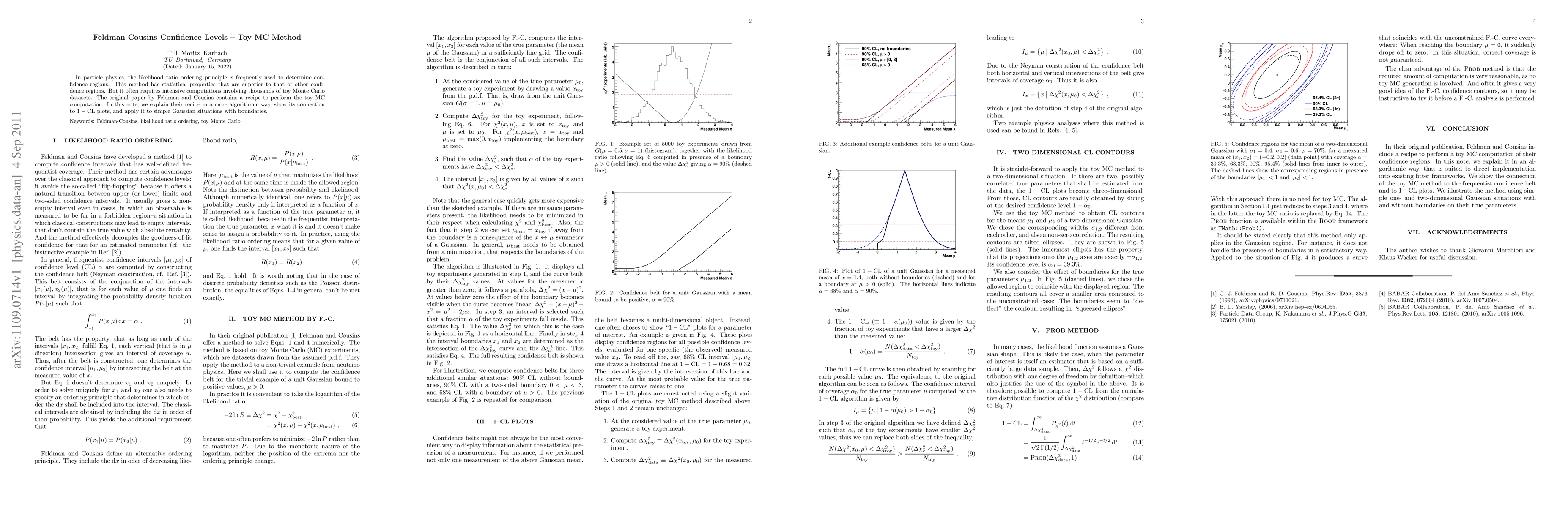 This paper provides an algorithmic explanation of Feldman-Cousins confidence levels, detailing their toy Monte Carlo method and demonstrating its application to Gaussian distributions with boundary conditions, while linking it to 1-CL plots. The focus is on simplifying the computational process for determining confidence regions in particle physics.