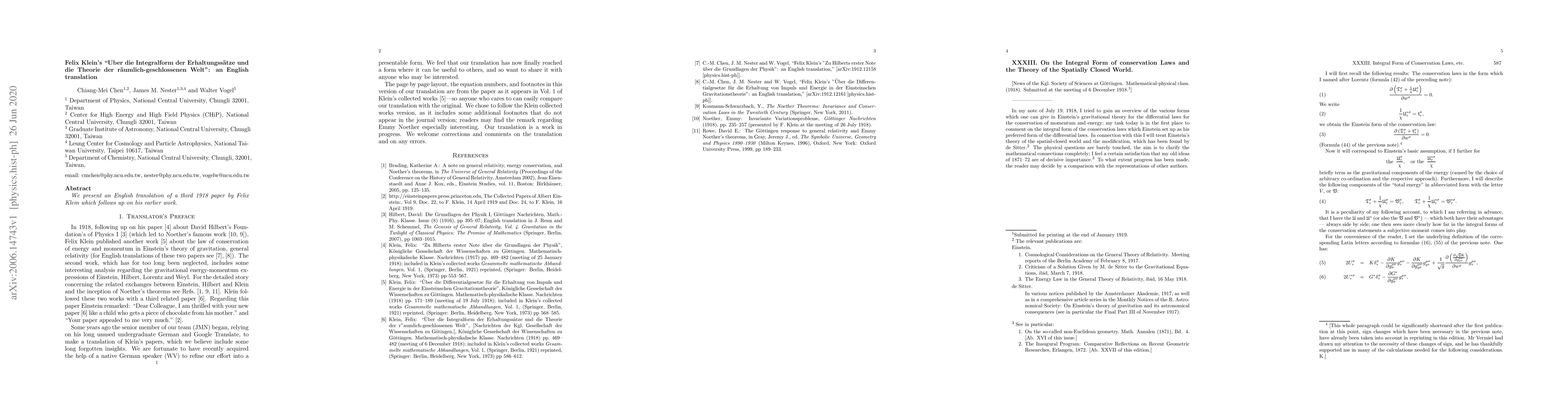We present an English translation of a third 1918 paper by Felix Klein which follows up on his earlier work.