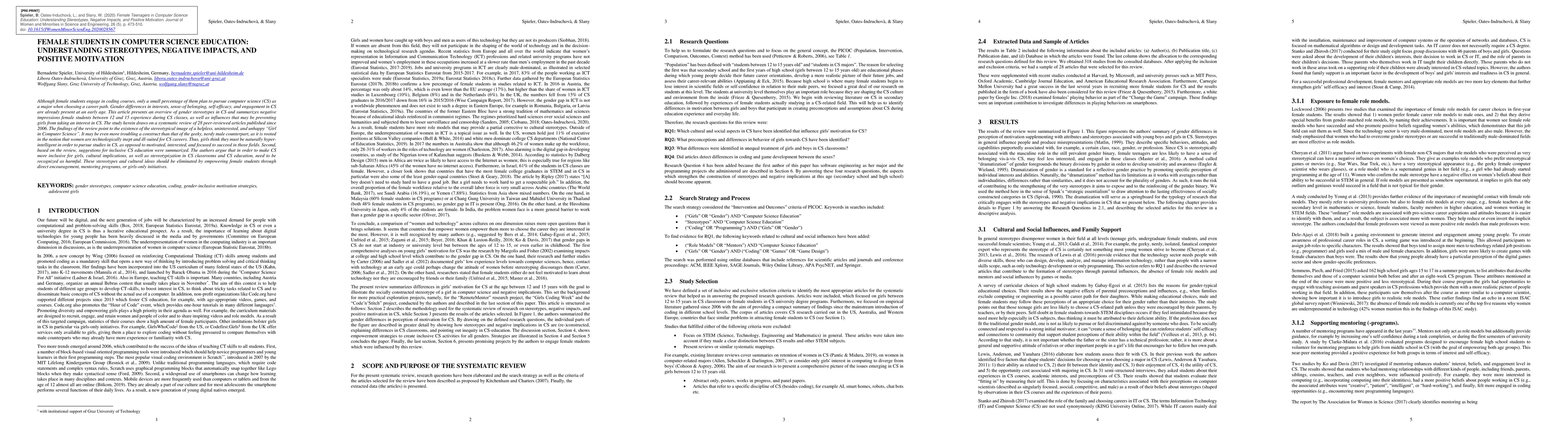 This paper reviews gender stereotypes affecting female students in computer science education, highlighting the negative impacts of these stereotypes and proposing inclusive strategies to motivate and support girls in pursuing CS. The study emphasizes the need to eliminate harmful stereotypes and cultural biases to foster a more welcoming environment for female students in CS.