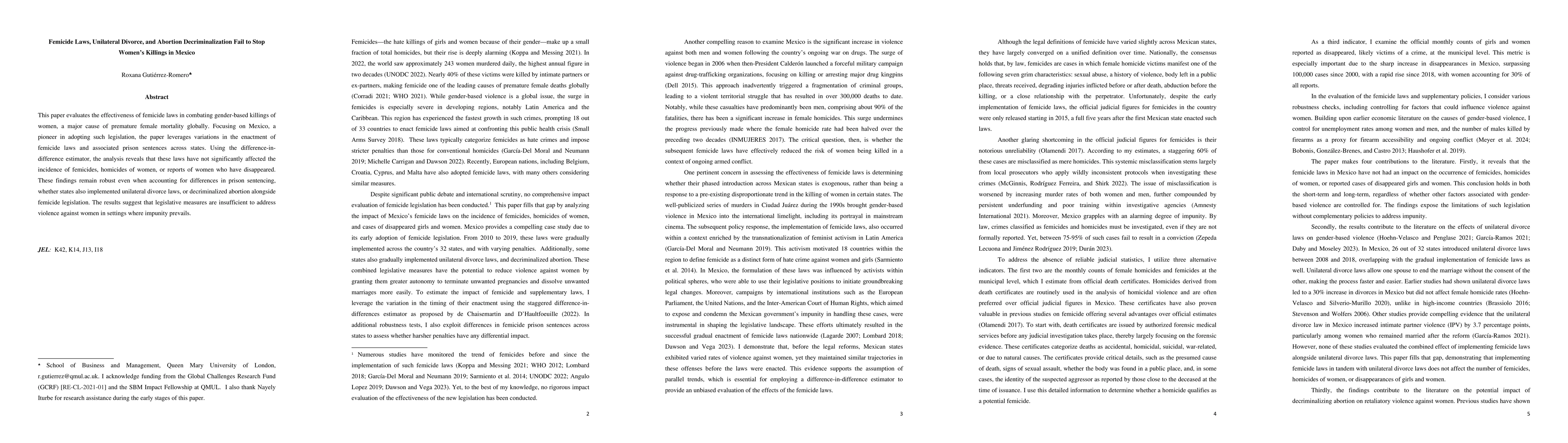 This study assesses the impact of femicide laws in Mexico, finding no significant reduction in femicides, despite the country's pioneering adoption of such legislation. The results indicate that legislative measures alone are ineffective in combating gender-based violence where impunity remains prevalent.