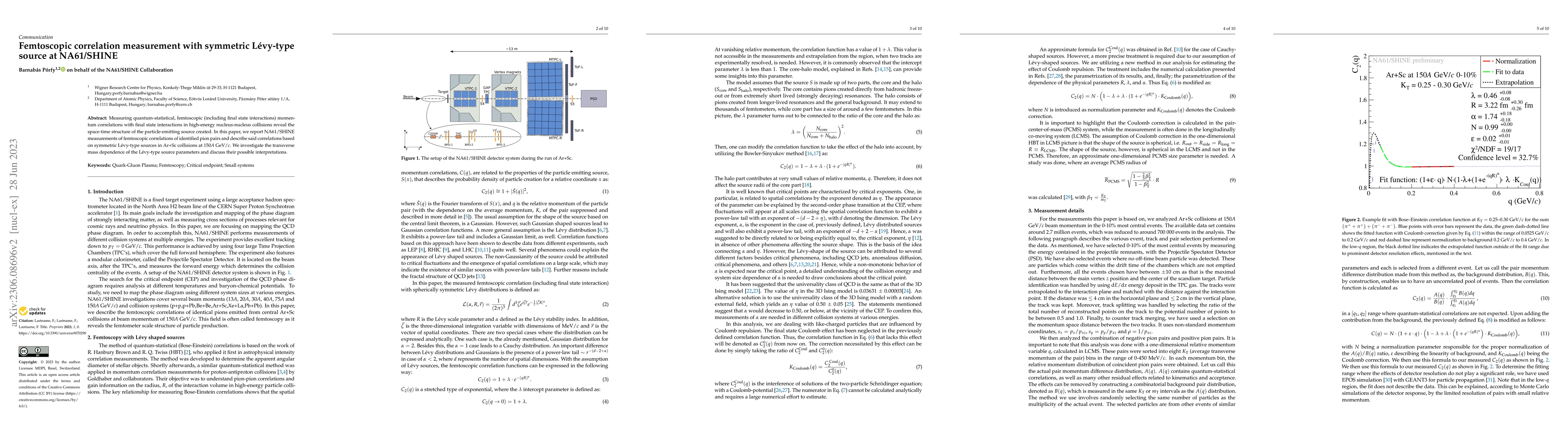 This paper reports NA61/SHINE measurements of femtoscopic correlations in Ar+Sc collisions at 150A GeV/c, revealing the space-time structure of the particle-emitting source through symmetric Lévy-type source models and analyzing the transverse mass dependence of these parameters.