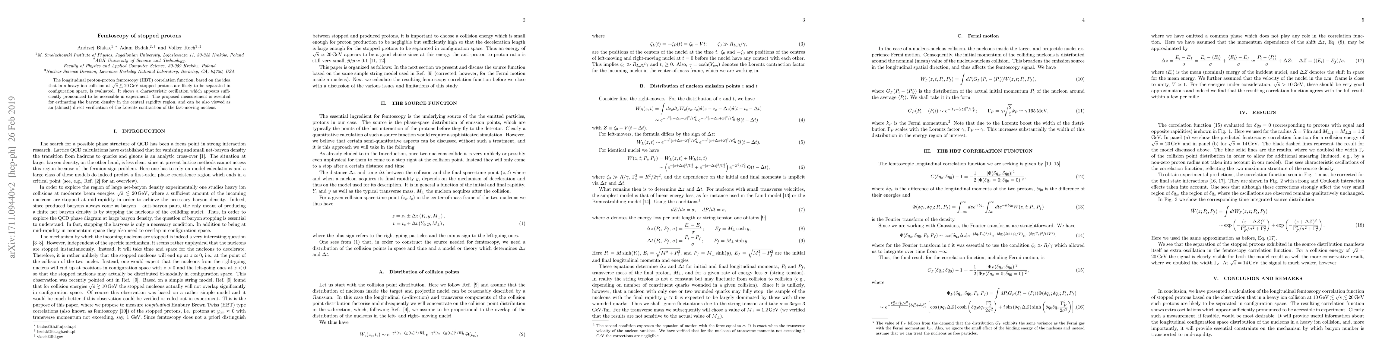 The longitudinal proton-proton femtoscopy (HBT) correlation function, based on the idea that in a heavy ion collision at $\sqrt{s} \lesssim 20$ GeV stopped protons are likely to be separated in configuration space, is evaluated. It shows a characteristic oscillation which appears sufficiently pronounced to be accessible in experiment. The proposed measurement is essential for estimating the baryon density in the central rapidity region, and can be also viewed as an (almost) direct verification of the Lorentz contraction of the fast-moving nucleus.