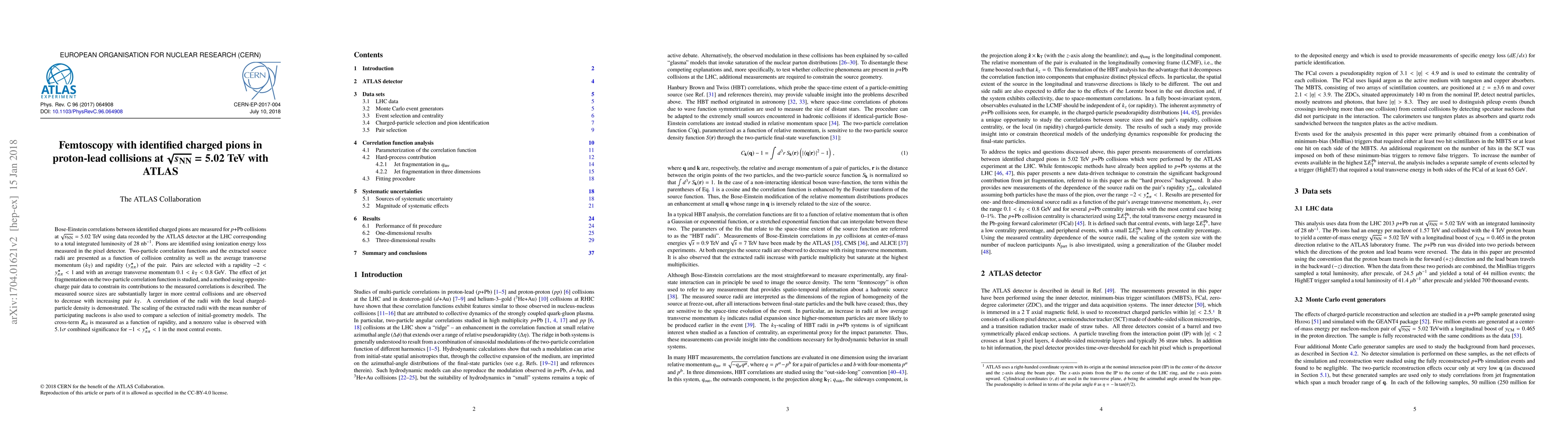 Researchers at ATLAS measured Bose-Einstein correlations between identified charged pions in proton-lead collisions, finding that source sizes increase with centrality and decrease with transverse momentum, providing insights into particle behavior.