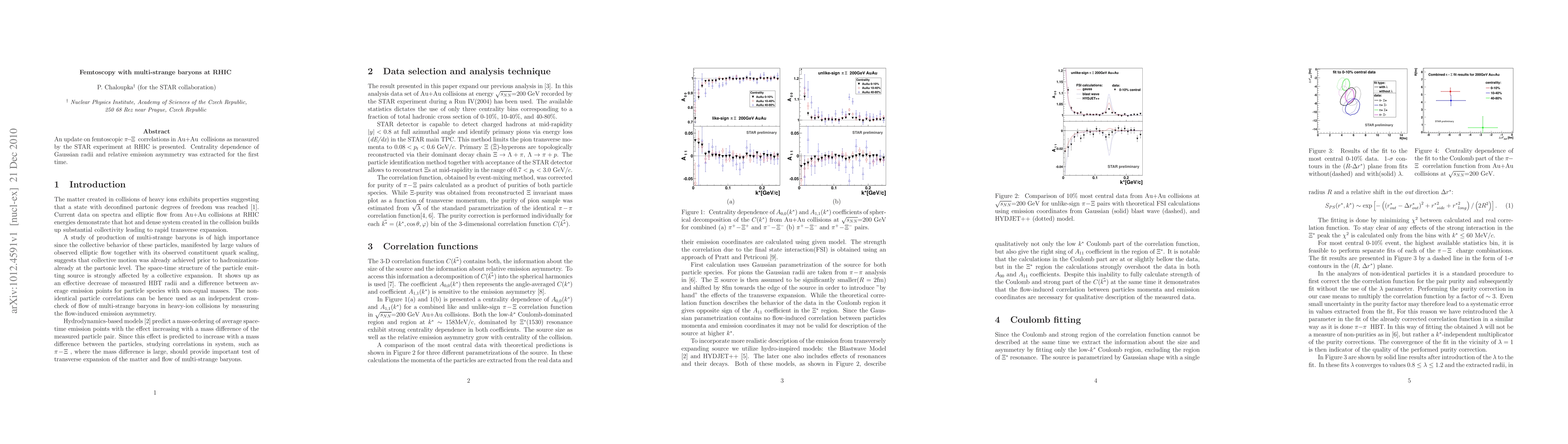 An update on femtoscopic pi-Xi correlations in Au+Au collisions as measured by the STAR experiment at RHIC is presented. Centrality dependence of Gaussian radii and relative emission asymmetry is extracted for the first time.