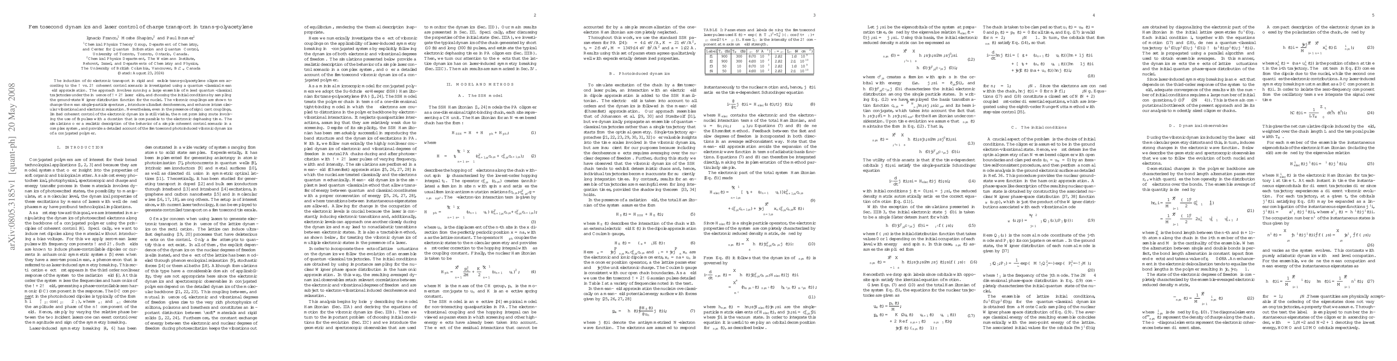 This paper explores the femtosecond dynamics and laser control of charge transport in trans-polyacetylene using quantum-classical mean field approximation. The study reveals that while vibronic couplings induce ultrafast decoherence, coherent control of electronic transport remains feasible with femtosecond pulses.