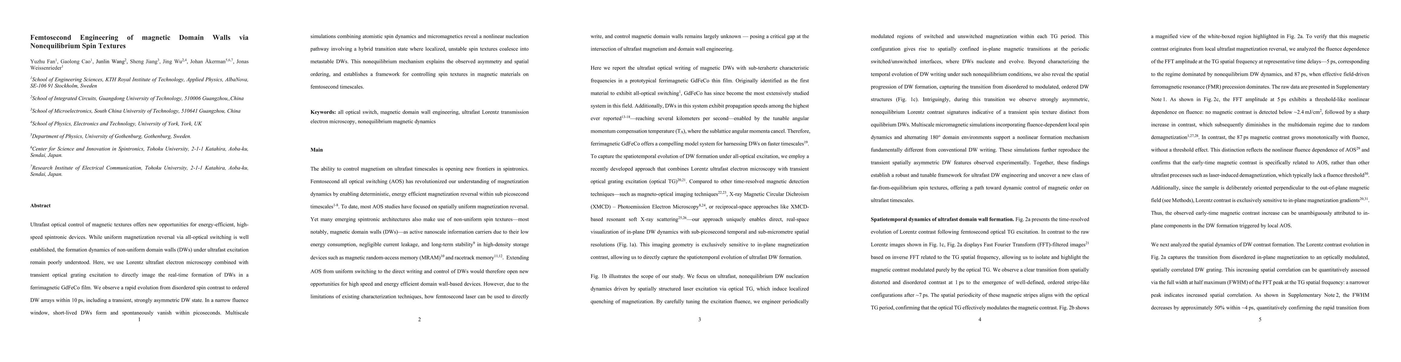 The paper presents a comprehensive study combining experimental and simulation techniques to understand the ultrafast formation of magnetic domain walls, revealing a novel nonequilibrium DW nucleation mechanism.