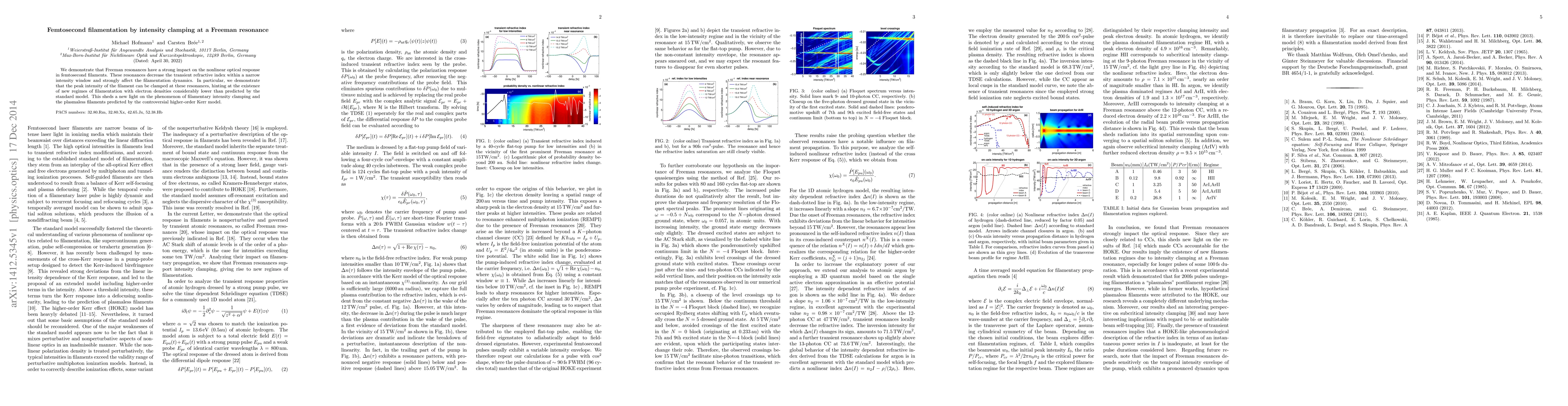 This paper demonstrates that Freeman resonances significantly influence femtosecond filamentation by clamping peak intensity within a narrow intensity window, revealing new regimes of filamentation with lower electron densities than the standard model predicts, and supporting the existence of plasmaless filaments predicted by the higher-order Kerr model.