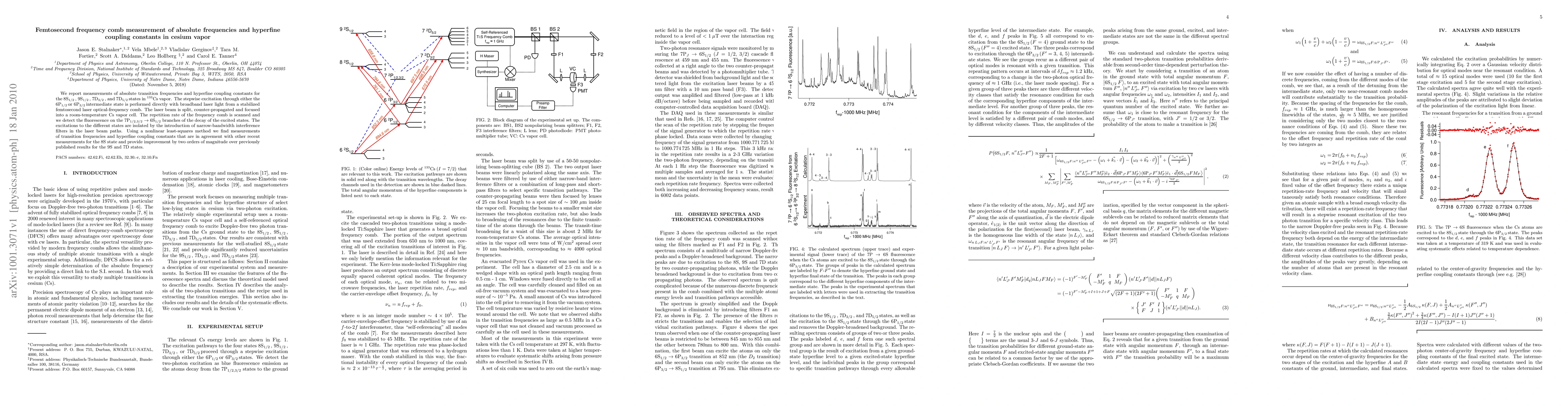 This paper reports precise measurements of absolute transition frequencies and hyperfine coupling constants in ^{133}Cs vapor using a femtosecond laser frequency comb. The method provides significant improvements in accuracy for the 9S and 7D states compared to previous results.