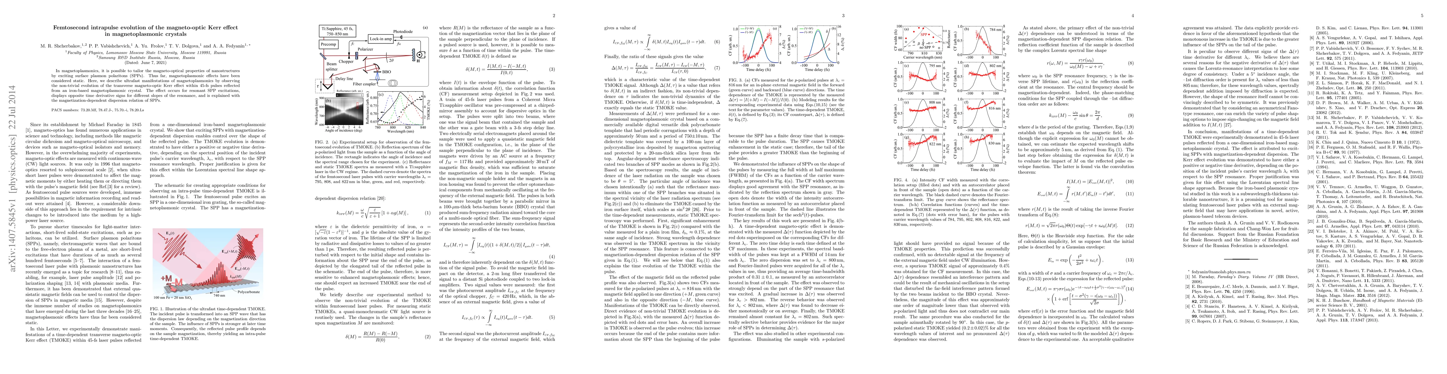 This study investigates the femtosecond intrapulse evolution of the magneto-optic Kerr effect in magnetoplasmonic crystals, revealing dynamic magnetoplasmonic responses within 45-fs pulses, driven by resonant surface plasmon polariton excitations and explained by magnetization-dependent dispersion relations.