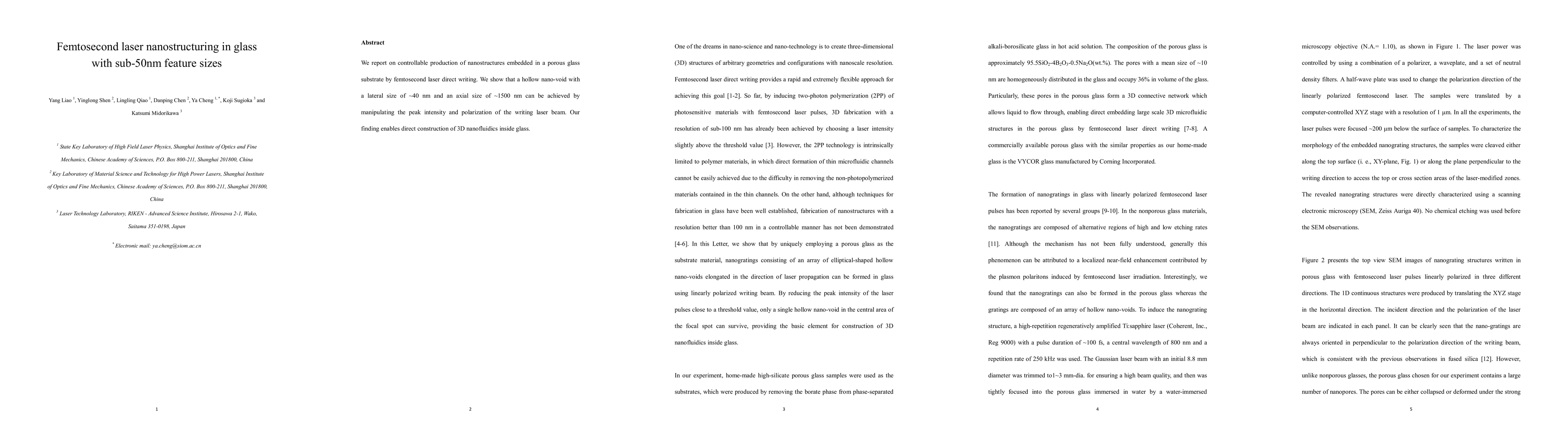 Researchers successfully created nanostructures in glass with feature sizes as small as 40nm using femtosecond laser direct writing, enabling the creation of 3D nanofluidics inside glass.