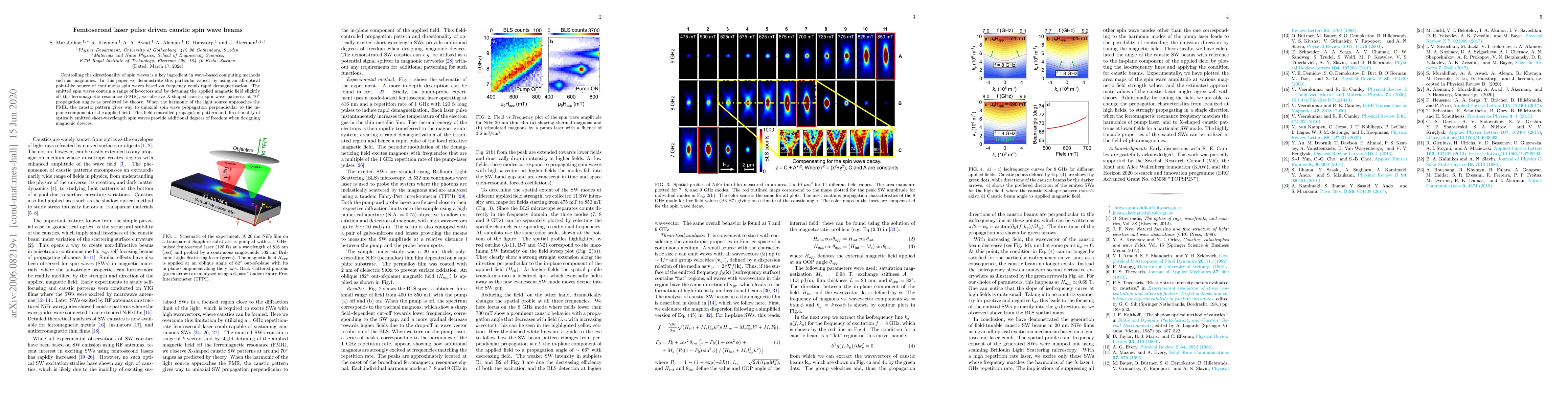 This paper demonstrates the control of spin wave directionality using femtosecond laser pulses to generate caustic spin-wave patterns, showing X-shaped propagation at specific angles. The study reveals that adjusting the magnetic field allows for the transition from caustic to uniaxial spin-wave propagation, enhancing the design flexibility of magnonic devices.
