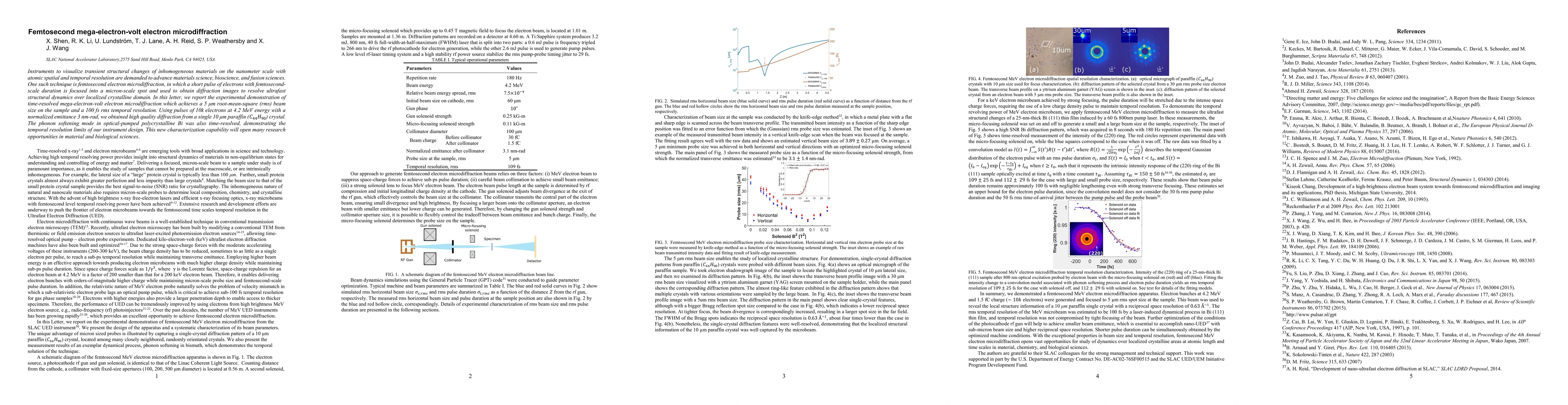 This paper demonstrates femtosecond mega-electron-volt electron microdiffraction achieving 5 μm beam size and 100 fs temporal resolution, enabling visualization of ultrafast structural changes in materials. High-quality diffraction from paraffin and phonon softening in Bi showcases the technique's potential for advancing material and biological sciences.