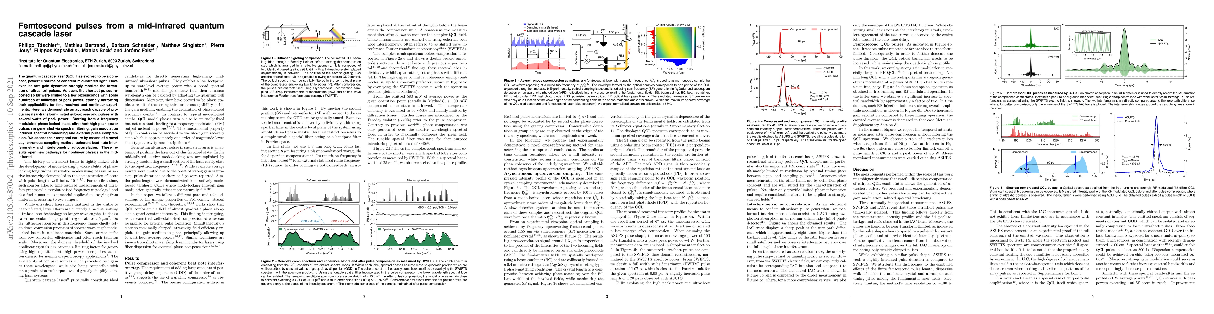 The research utilized a frequency modulated phase-locked state from a quantum cascade laser (QCL) and external pulse compression to generate sub-picosecond pulses with several watts of peak power.