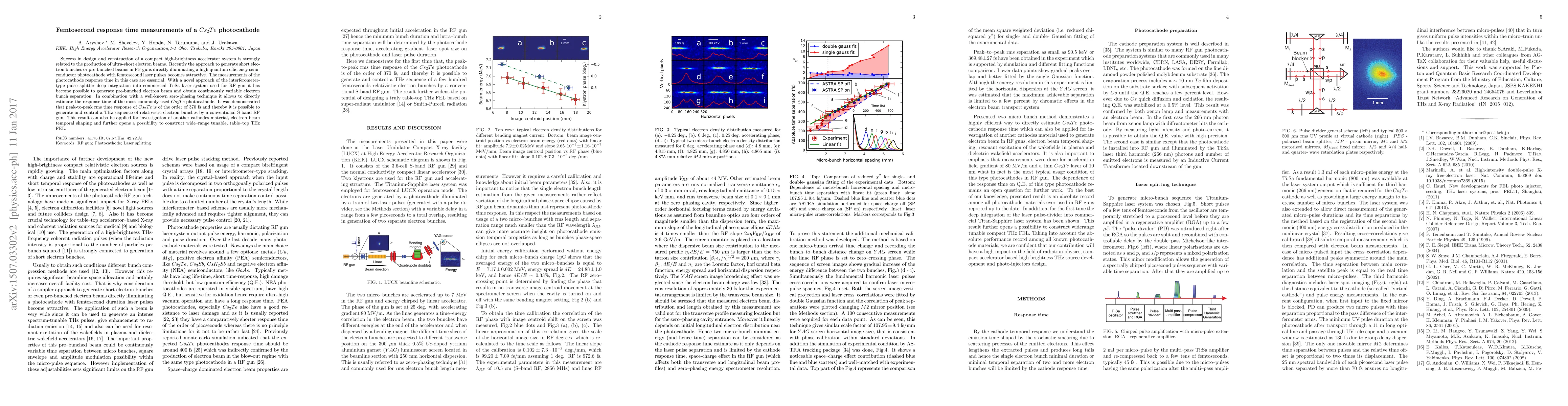 This study measures the femtosecond response time of a Cs2Te photocathode using laser pulses and RF techniques, finding it to be around 250 fs. The results suggest the potential for generating THz sequences of relativistic electron bunches and constructing tunable THz free-electron lasers.