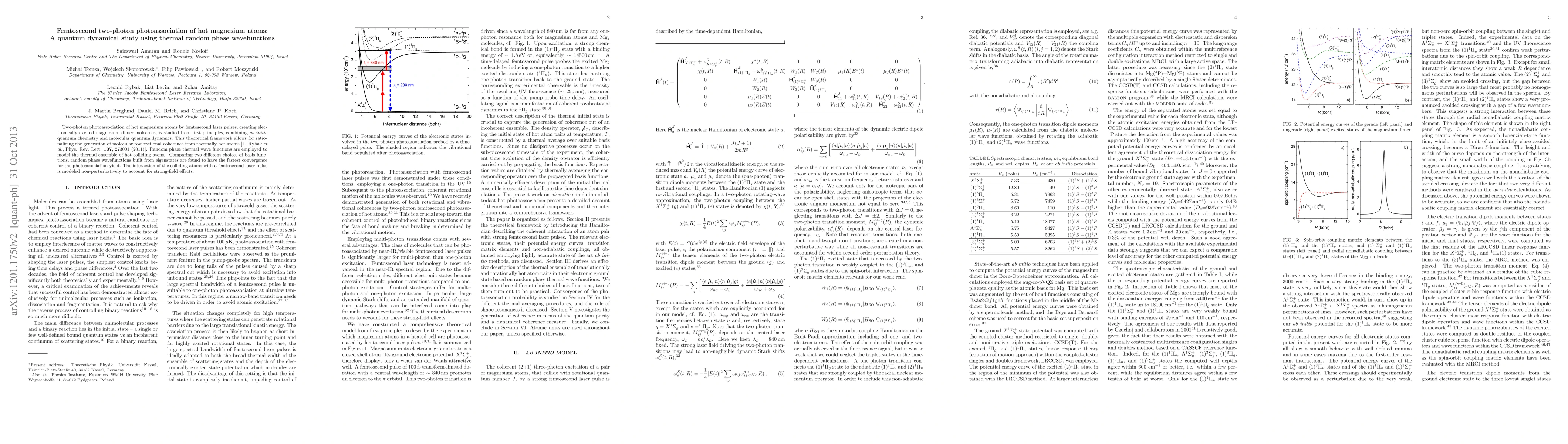 Two-photon photoassociation of hot magnesium atoms by femtosecond laser pulses, creating electronically excited magnesium dimer molecules, is studied from first principles, combining \textit{ab initio} quantum chemistry and molecular quantum dynamics. This theoretical framework allows for rationalizing the generation of molecular rovibrational coherence from thermally hot atoms [L. Rybak \textit{et al.}, Phys. Rev. Lett. {\bf 107}, 273001 (2011)]. Random phase thermal wave functions are employed to model the thermal ensemble of hot colliding atoms. Comparing two different choices of basis functions, random phase wavefunctions built from eigenstates are found to have the fastest convergence for the photoassociation yield. The interaction of the colliding atoms with a femtosecond laser pulse is modeled non-perturbatively to account for strong-field effects.