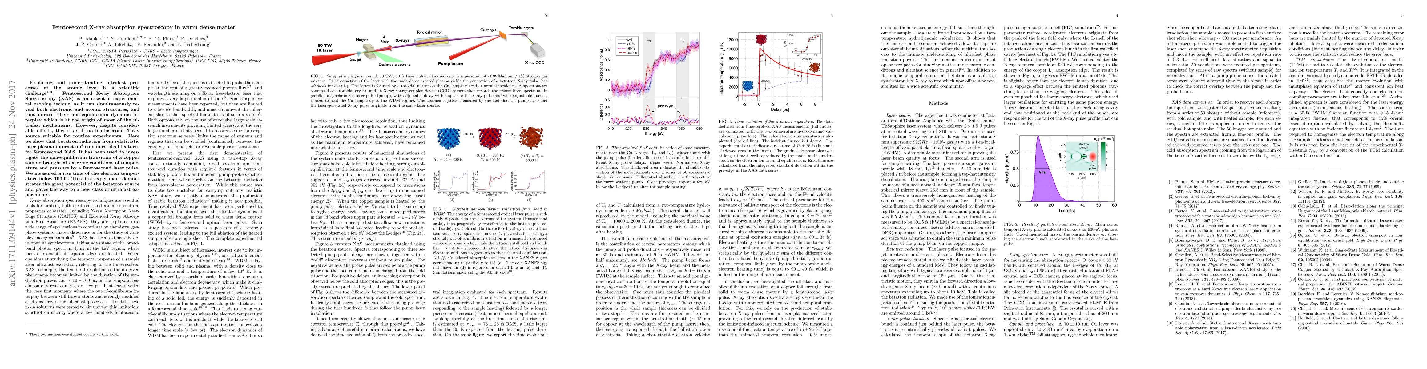 The paper presents a novel approach using betatron X-ray radiation from laser-plasma interaction for femtosecond X-ray absorption spectroscopy, enabling the measurement of ultrafast non-equilibrium transitions in warm dense matter.