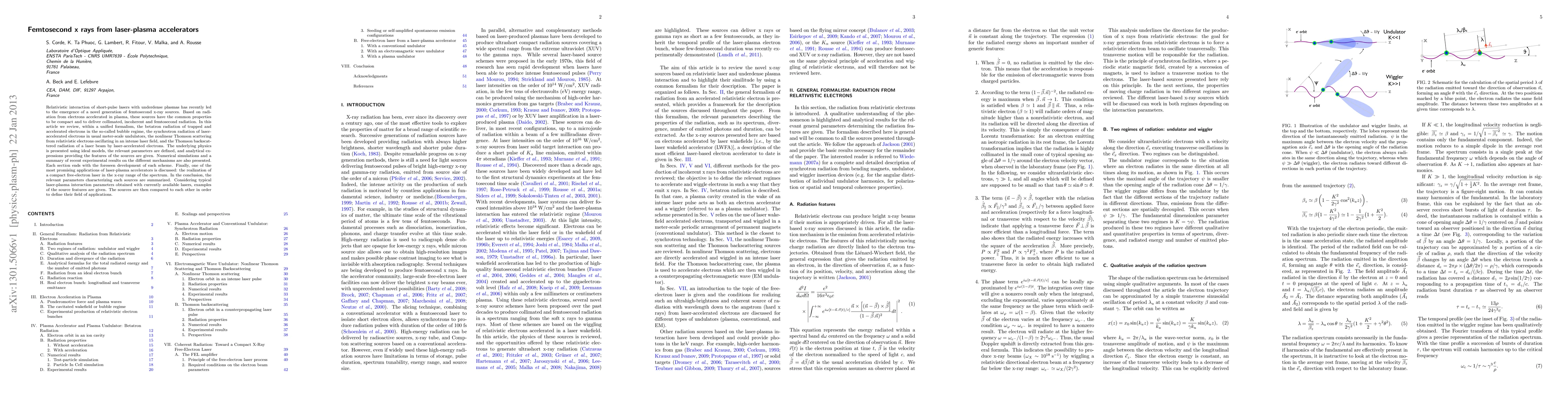 The paper reviews various mechanisms of femtosecond X-ray generation from laser-plasma accelerators, including betatron radiation, synchrotron radiation, nonlinear Thomson scattering, and Thomson backscattering, using both analytical models and numerical simulations.