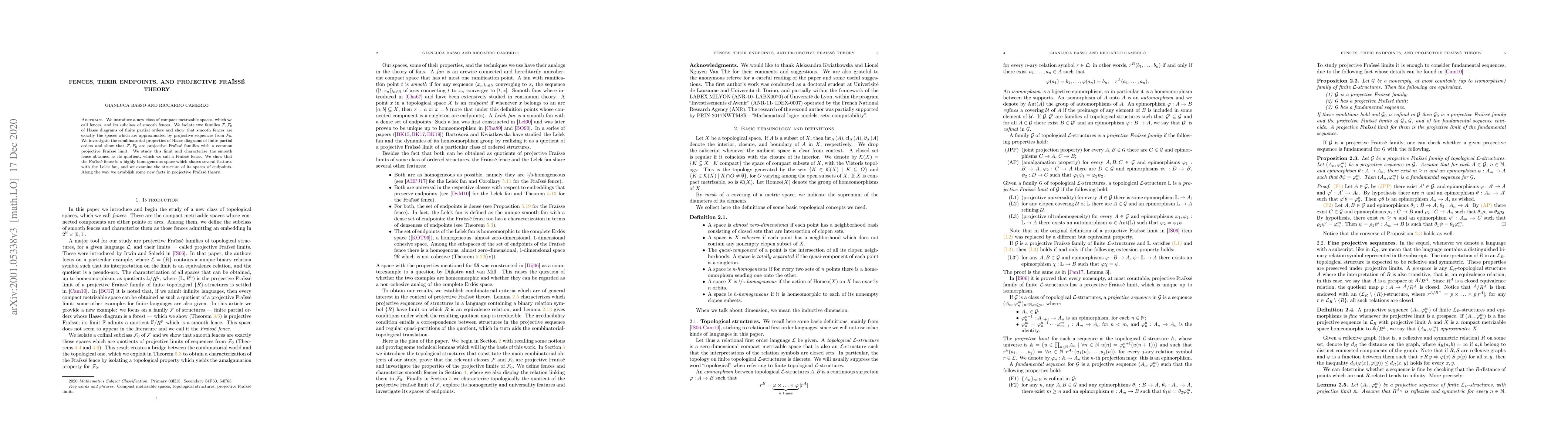 We introduce a new class of compact metrizable spaces, which we call fences, and its subclass of smooth fences. We isolate two families $\mathcal F, \mathcal F_0$ of Hasse diagrams of finite partial orders and show that smooth fences are exactly the spaces which are approximated by projective sequences from $\mathcal F_0$. We investigate the combinatorial properties of Hasse diagrams of finite partial orders and show that $\mathcal F, \mathcal F_0$ are projective Fra\"iss\'e families with a common projective Fra\"iss\'e limit. We study this limit and characterize the smooth fence obtained as its quotient, which we call a Fra\"iss\'e fence. We show that the Fra\"iss\'e fence is a highly homogeneous space which shares several features with the Lelek fan, and we examine the structure of its spaces of endpoints. Along the way we establish some new facts in projective Fra\"iss\'e theory.