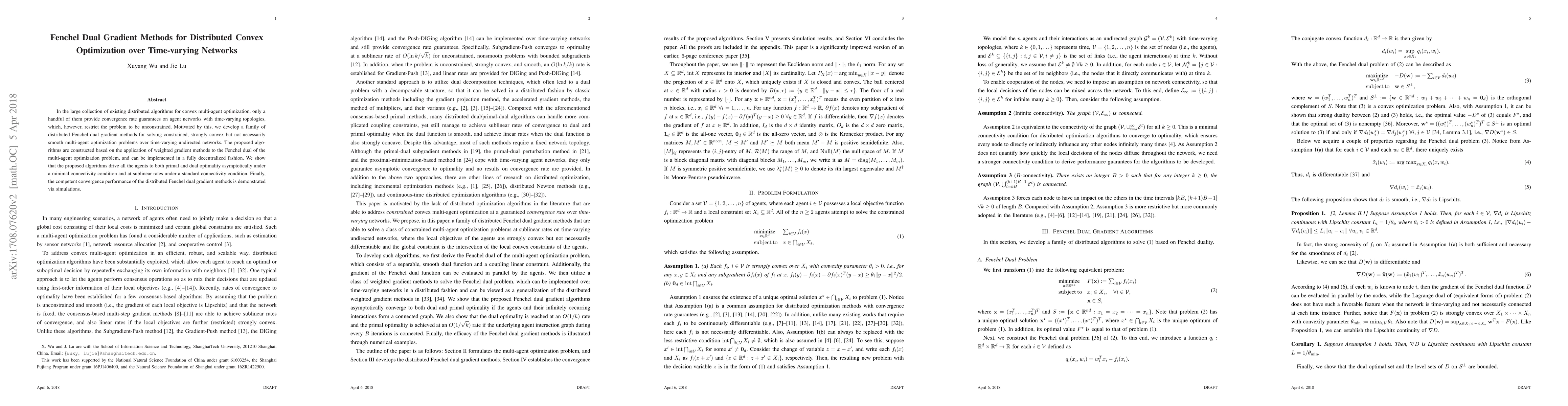 This paper introduces distributed Fenchel dual gradient methods for solving constrained, strongly convex optimization problems over time-varying networks. The proposed algorithms achieve both primal and dual optimality asymptotically under minimal connectivity conditions, and demonstrate competent convergence performance via simulations.