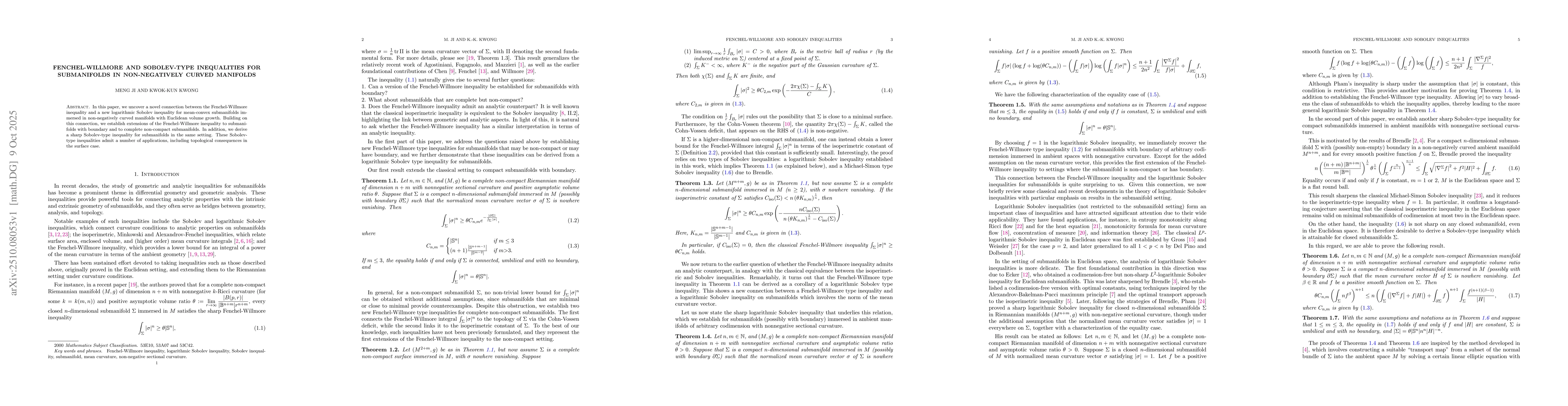 These results advance the understanding of geometric inequalities in curved spaces, with applications to minimal surface theory, geometric flows, and isoperimetric problems. They provide essential tools for analyzing the global geometry of submanifolds in non-compact settings.