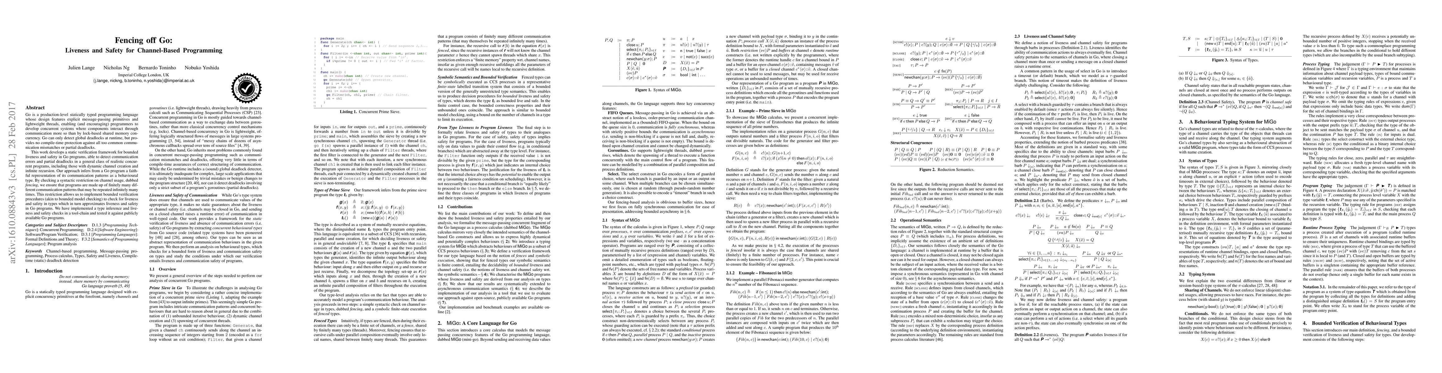 This paper develops a static verification framework for detecting communication errors and partial deadlocks in Go programs, leveraging a behavioral type inference and a syntactic channel usage restriction called "fencing." The proposed method ensures liveness and safety by approximating these properties in concurrent Go programs, which traditionally lack compile-time protection against such issues.