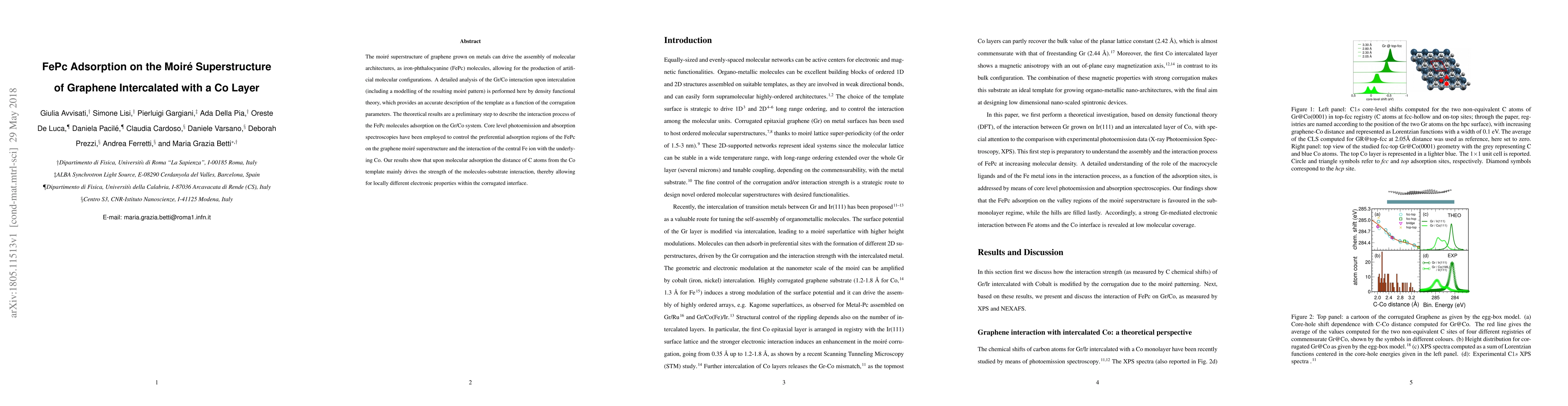 This study investigates the adsorption of iron-phthalocyanine (FePc) molecules on the moiré superstructure of graphene intercalated with a cobalt layer, using density functional theory to model the interaction. The research reveals that the strength of the FePc-substrate interaction is primarily driven by the distance of carbon atoms from the cobalt layer, leading to locally varying electronic properties.